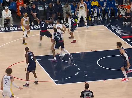 图三:最重要的一点,卢指导严防策略下,库里竟然没有机会出手三分。