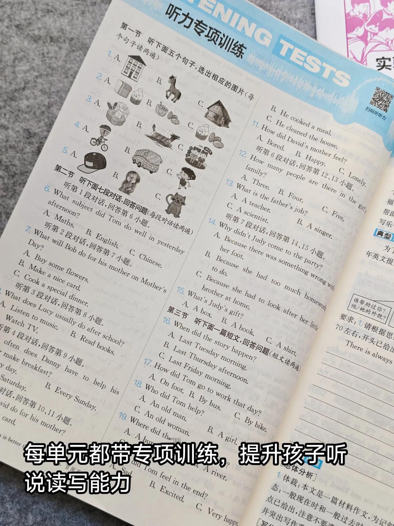 🌲每个单元结束还有四个专项模块,包括听力专项训练,作文写作突破,语法专题提升等,确保孩子听、说、读、写多种英语能力的全面提升。