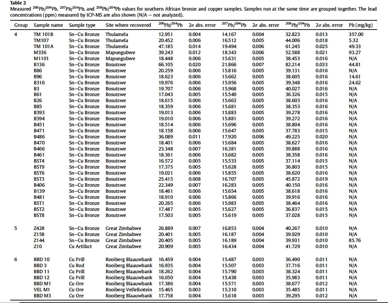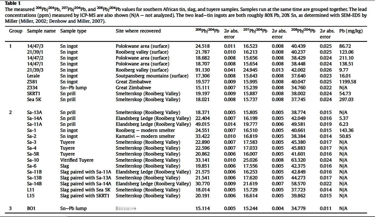 对比一下南非如意宝(Rooiberg)古锡铅矿的铅同位素比值。