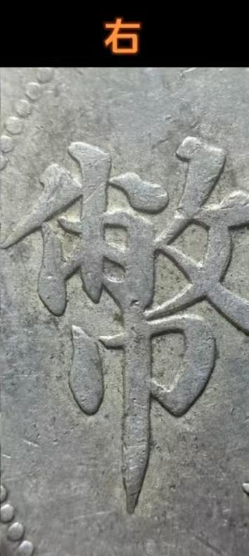 这是两枚大清银币的币字,从这个字来看,你们觉得这两枚银币哪一枚比较开门,有可能全