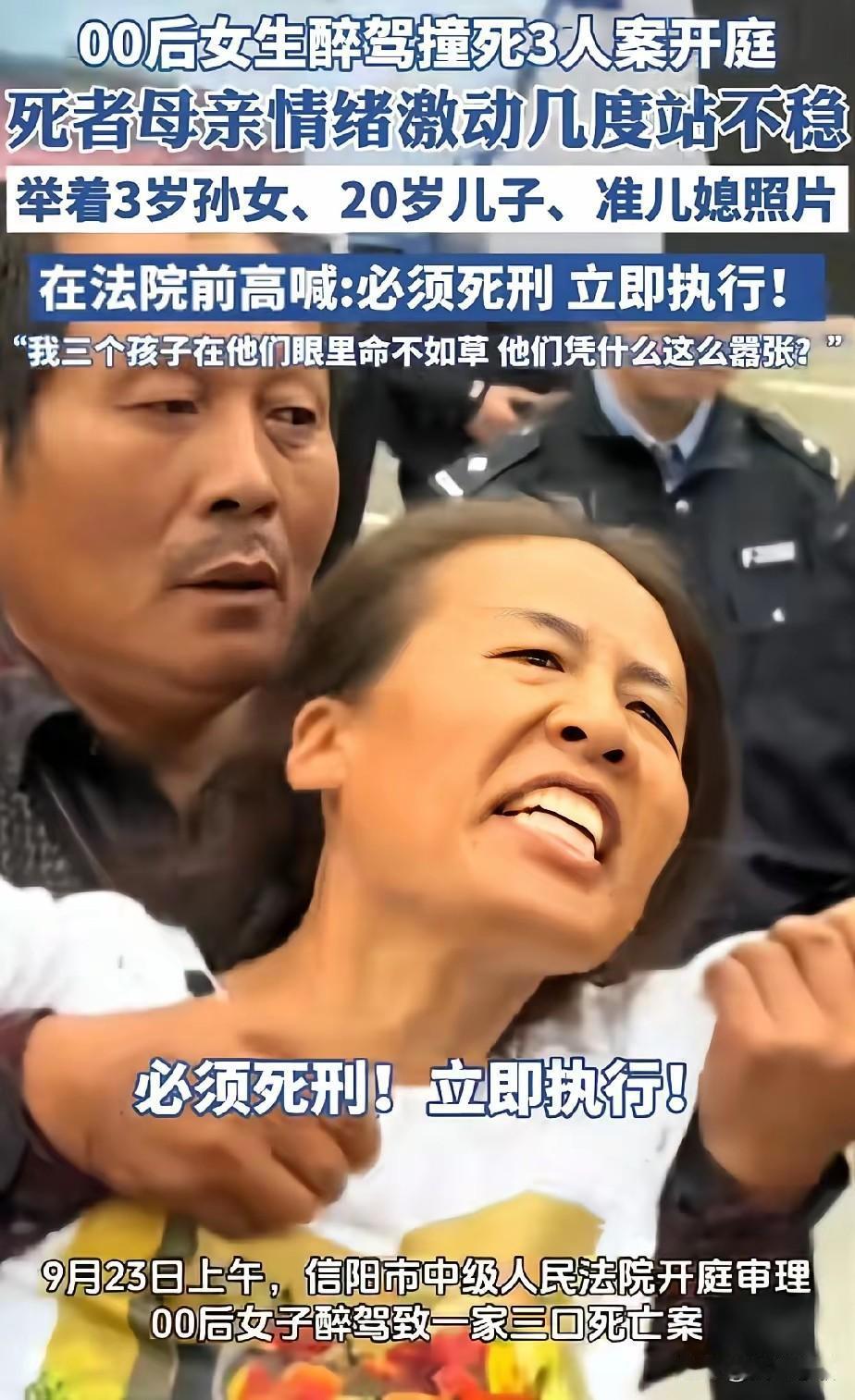 醉酒驾驶,撞死三人,其中一对风华正茂的情侣,还有一个不满三周岁的女孩,三条无辜的生命就在那一瞬间消失了,肇事者也是一名00后女生,不能以年幼为借口,逃脱法律的制裁吧?