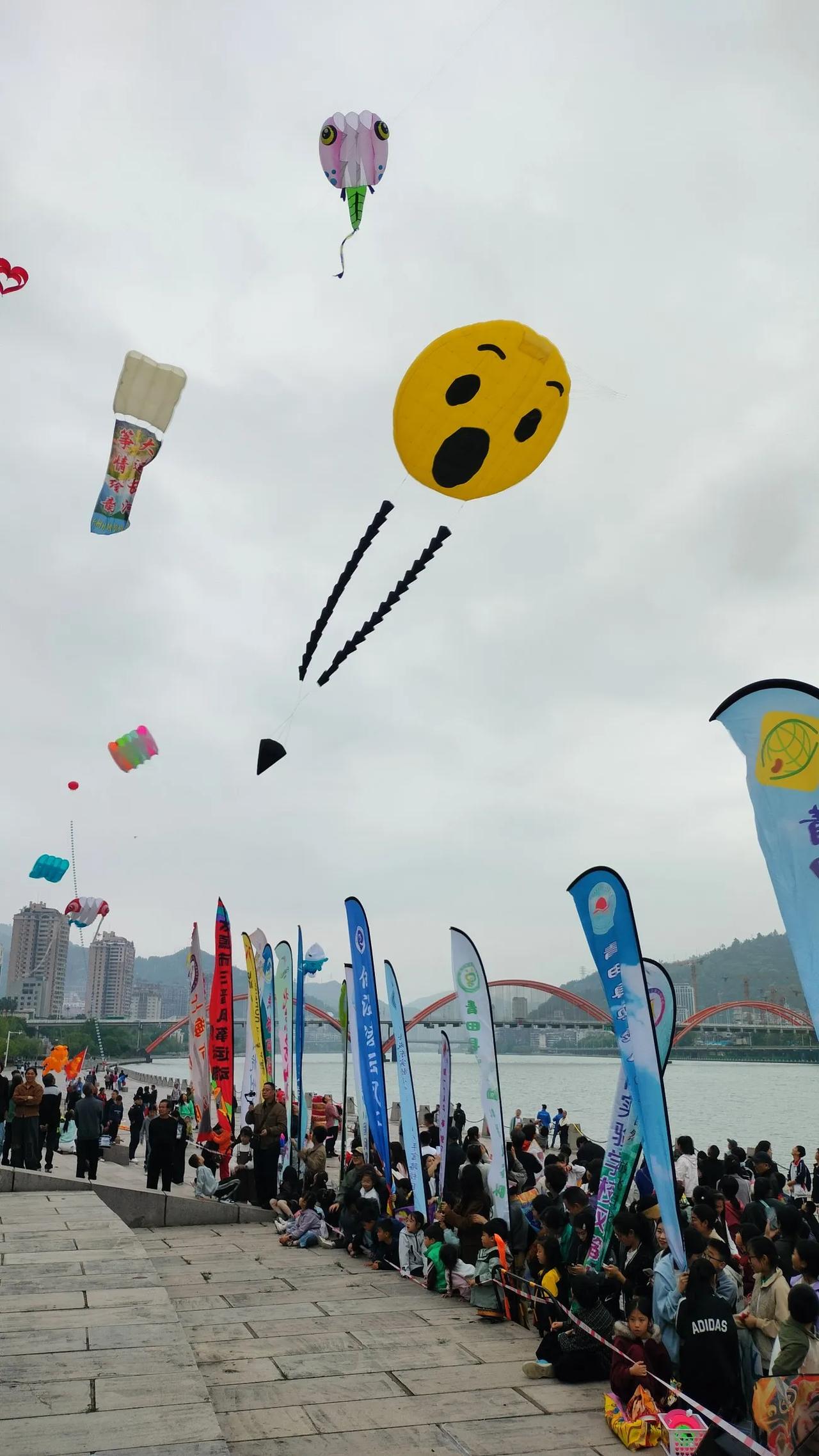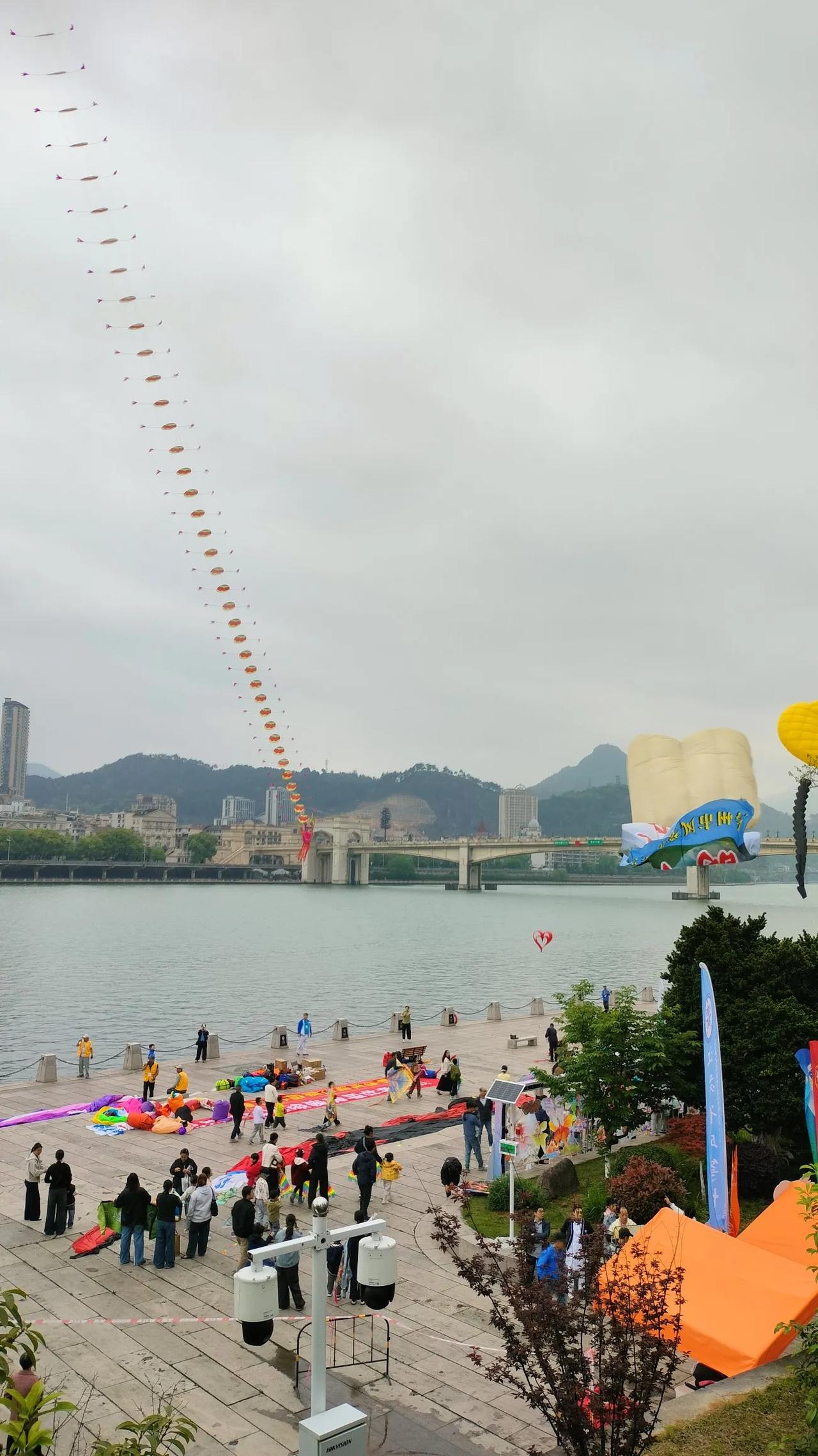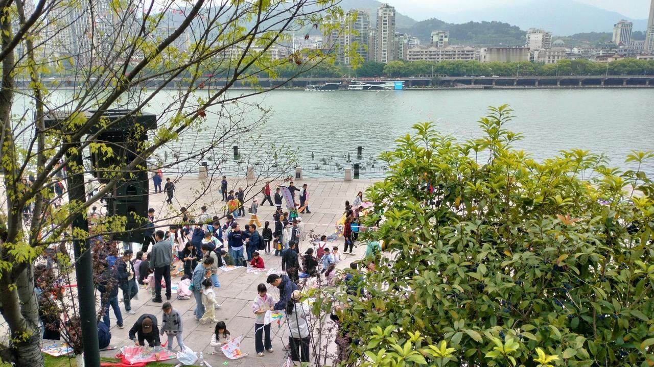 原定于早上举行浙江省风筝公开赛,外国友人也请了,该准备的也准备了,结果下了一夜的大雨,到早上还在下。原以为要泡汤,所幸的是下午暂时放晴。大家说,像这种要看老天颜色的室外活动,如果遇到大雨,是不是要被迫取消?