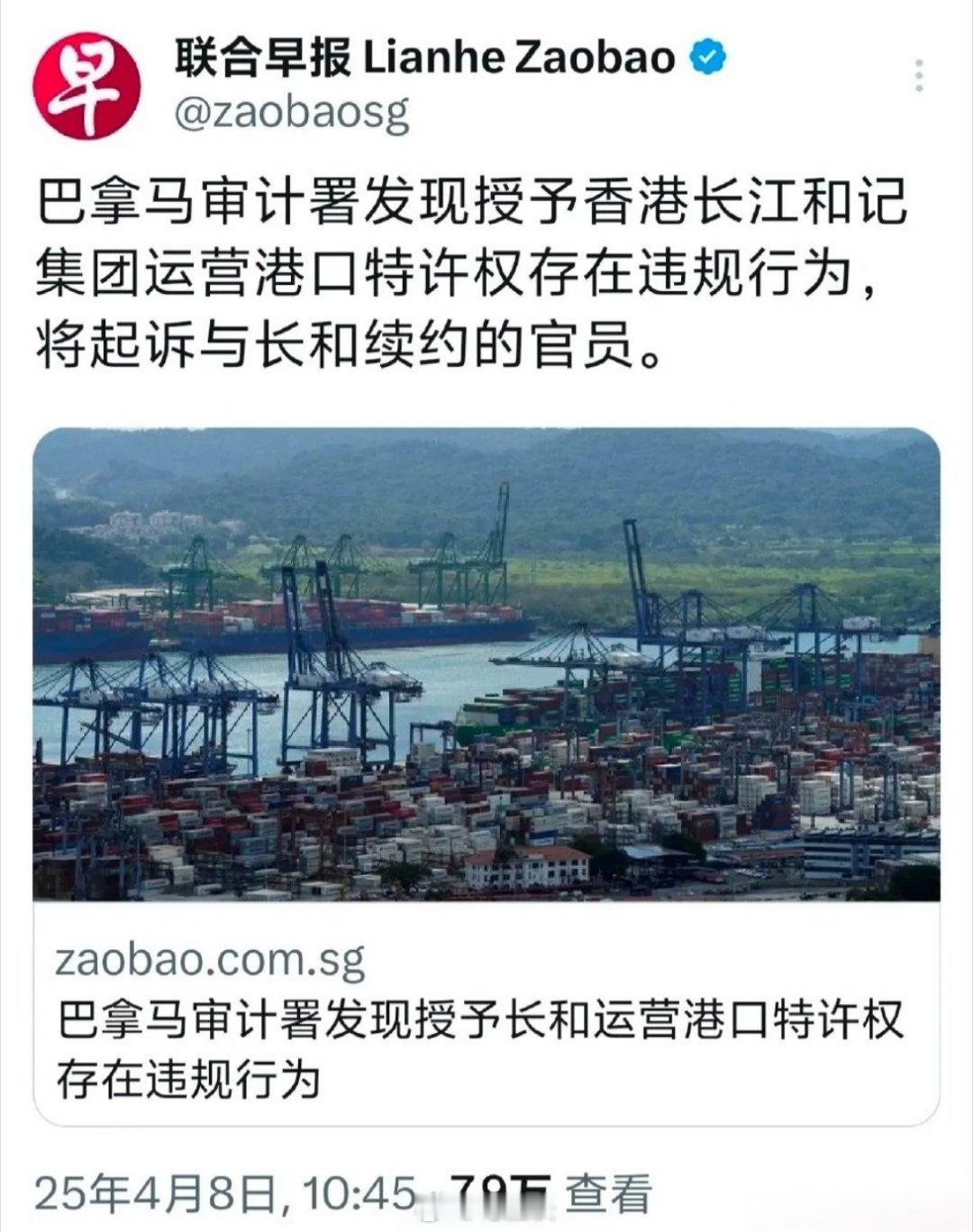 巴拿马港口从头到尾就是美国幕后操控的闹剧,长和集团砸18亿美元深耕巴拿马港口,合约签到2047年,结果巴方在美国施压下,公然撕约强夺经营权,西方天天喊的契约精神,全是笑话!