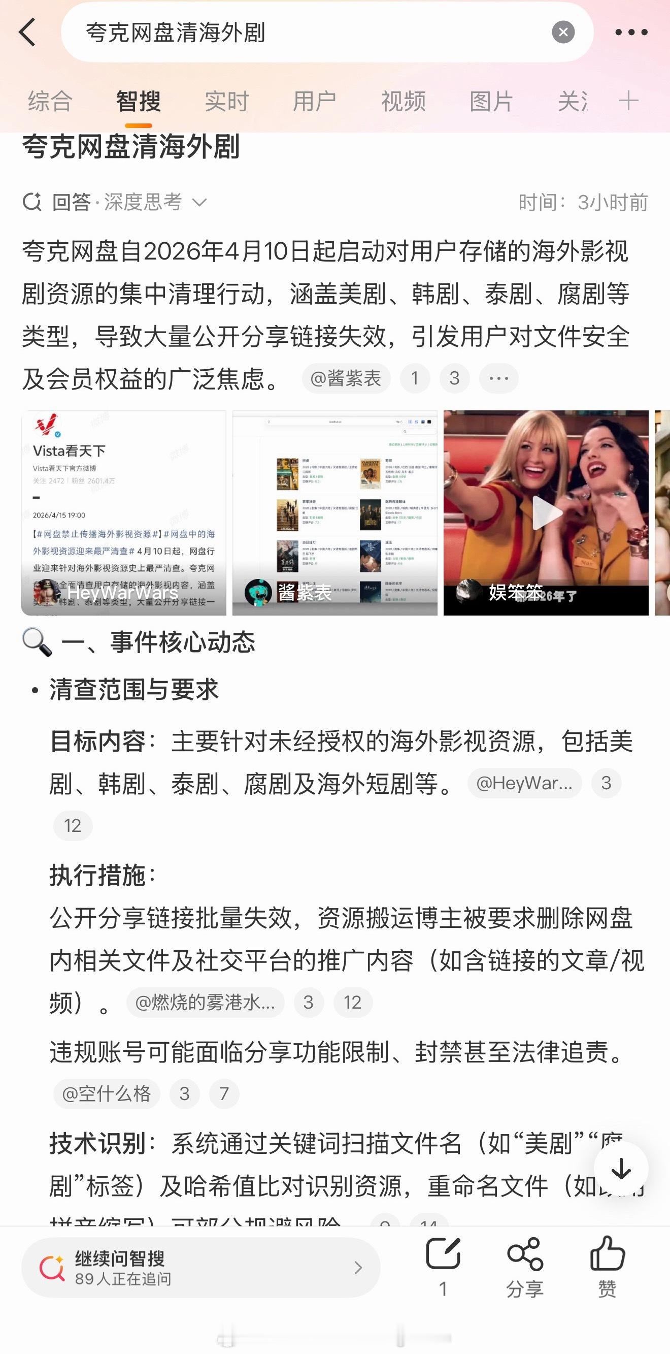 又来了‼️Vista看天下:4月10日起,网盘迎史上最严清查。开始全面清查用户存储的海外影视内容,涵盖美剧、韩剧、泰剧等类型,大量公开分享链接一夜失效。
