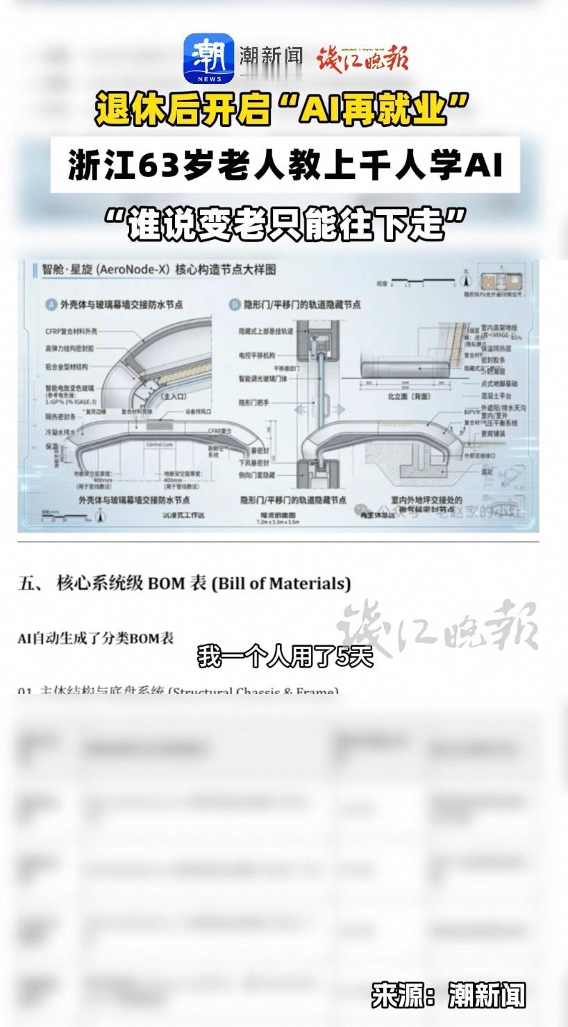 63岁退休老人教同龄人用AI在建筑行业摸爬滚打近四十年,63岁的赵伟程退休后转身“卷”起AI。他把复杂工程中“用最少积木搭出最多可能”的思维教给AI,让AI自动处理五千份图纸、优化户型组合。