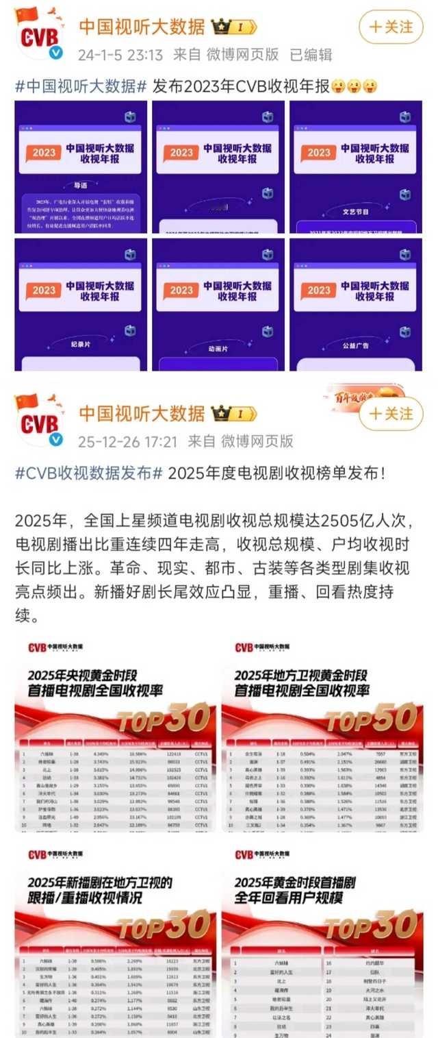 张晚意所有在黄金档播出的一番剧全都上榜CVB官方年报。收视福星