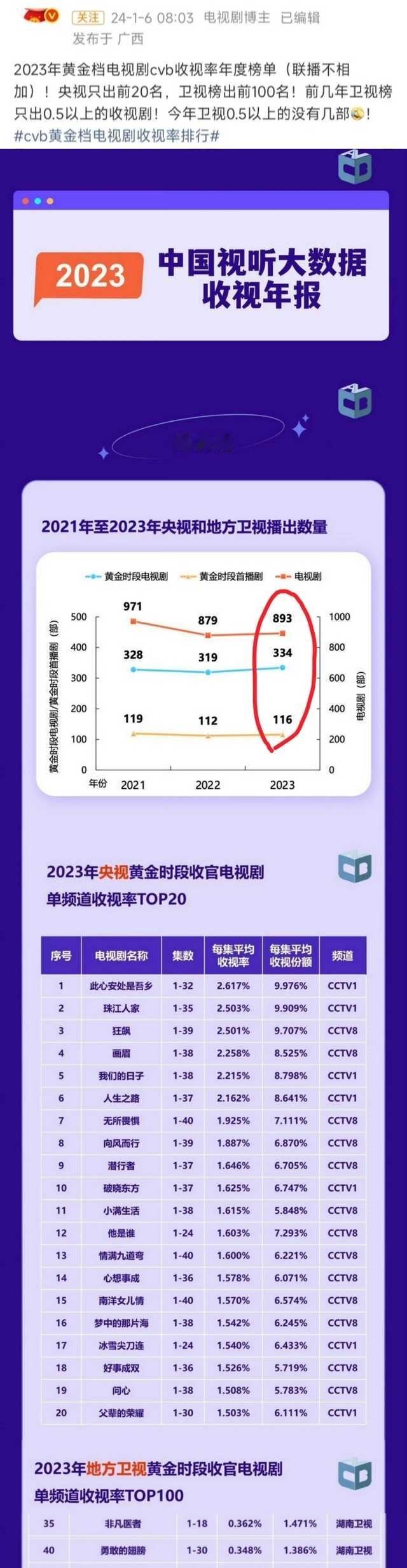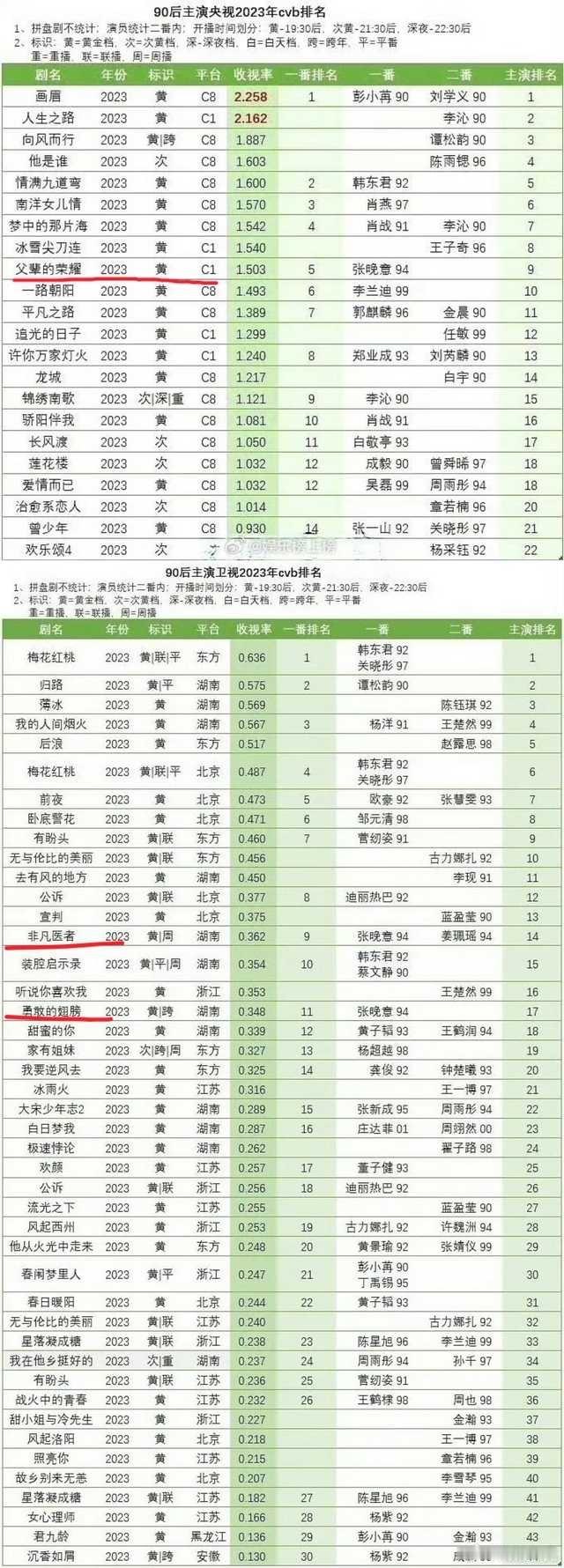张晚意所有在黄金档播出的一番剧全都上榜CVB官方年报。收视福星所有古偶男主剧都上