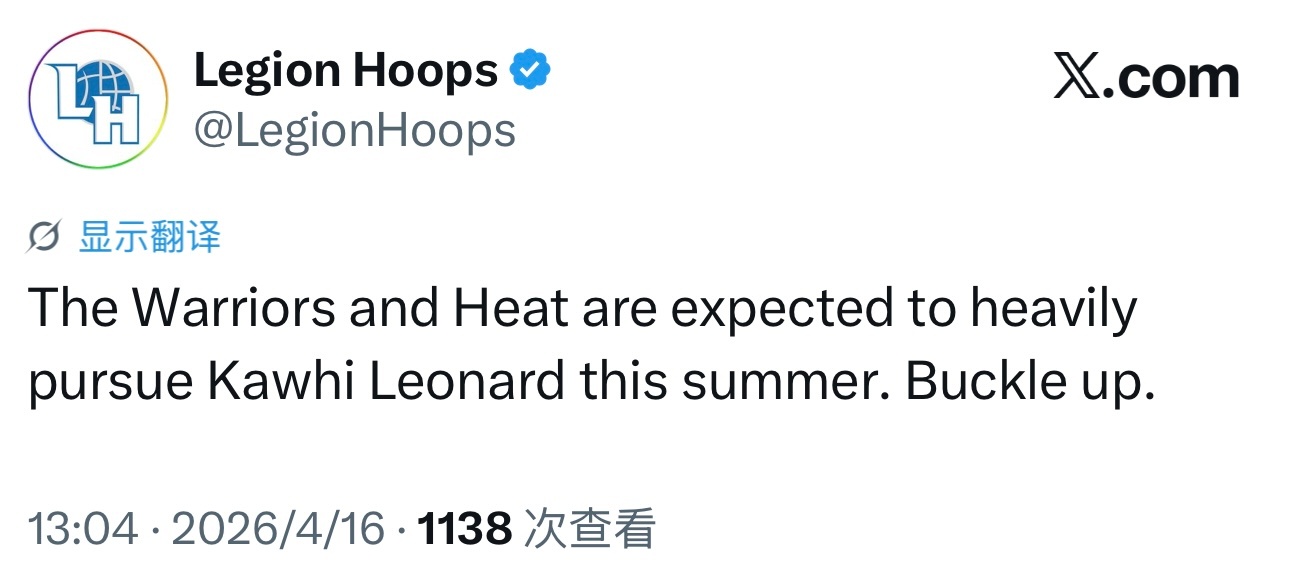 勇士和热火预计今年夏天大力追逐伦纳德。