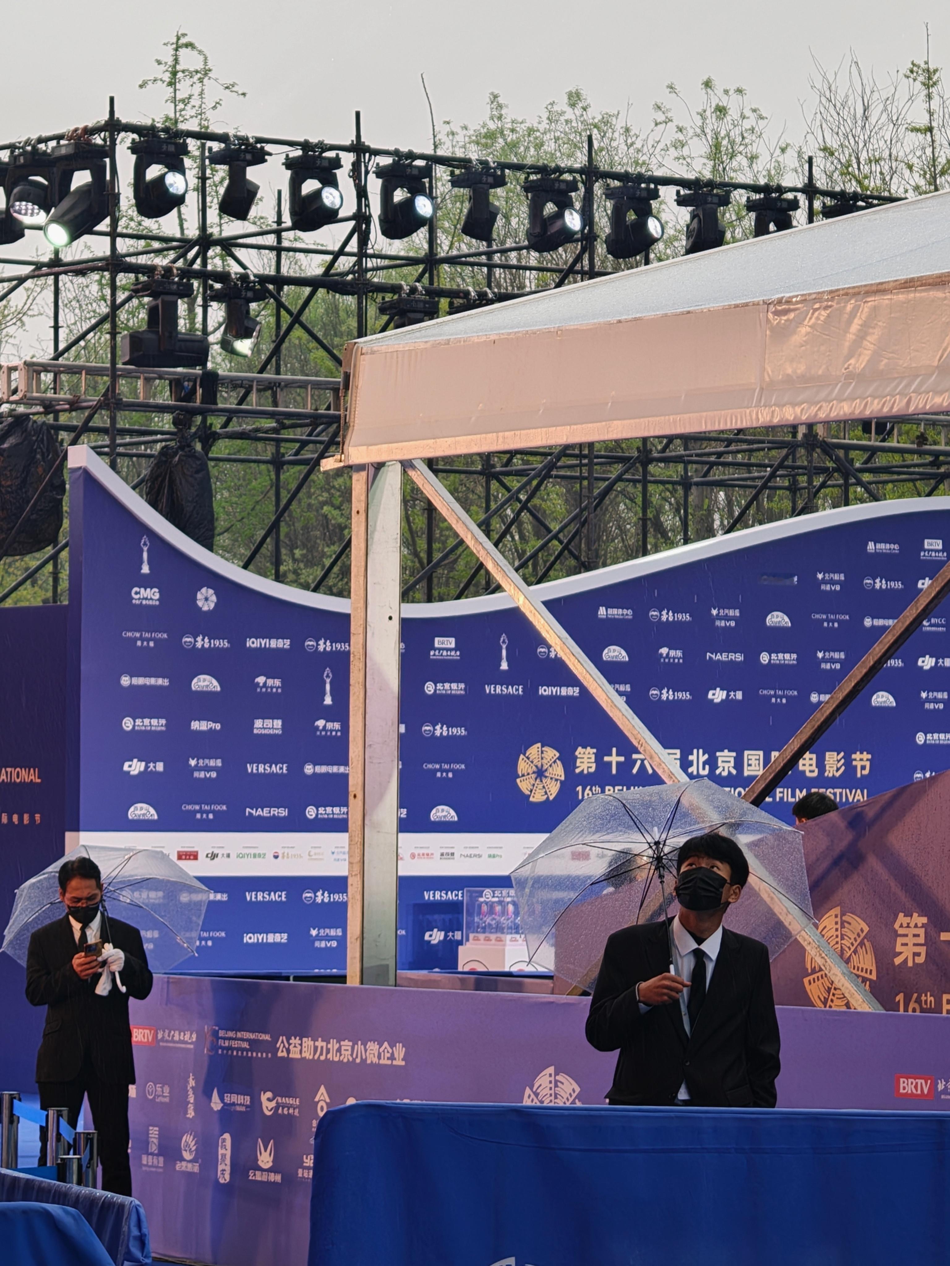 北影节开幕式的拍摄又赶上下雨.....