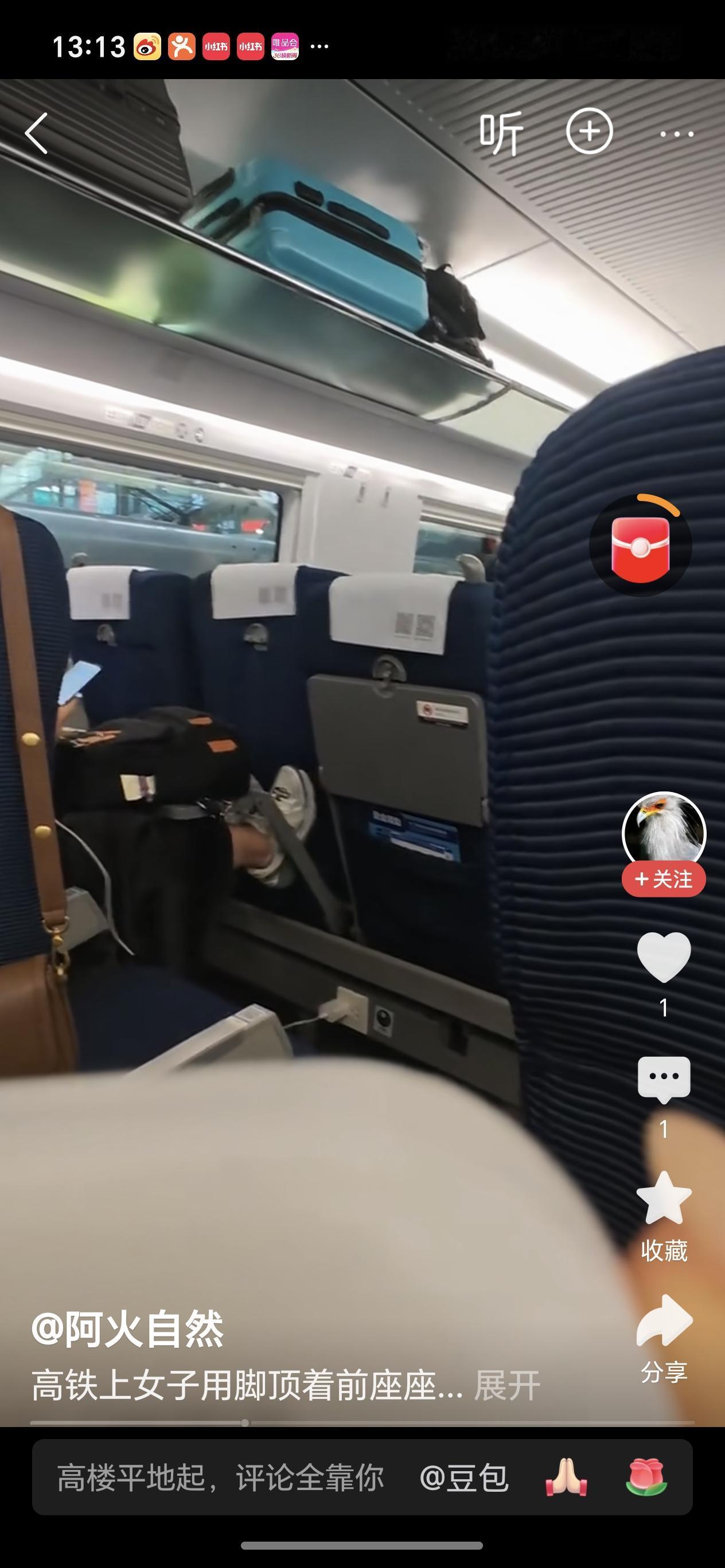 男子想把座椅往后靠被后排乘客蹬住近日,高铁上男子想把椅子正常往后靠,却被后排女乘