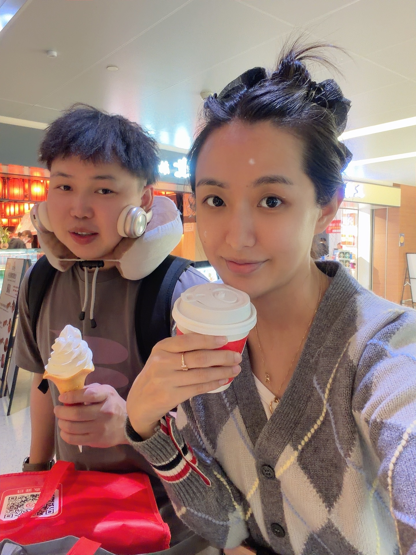 要胖一起胖 必须喊着同事一起吃冰淇淋 坤已经说减肥很久了 但跟我一起出差太难了
