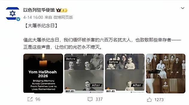以色列驻华使馆纪念大屠杀纪念日,评论区被攻陷了!