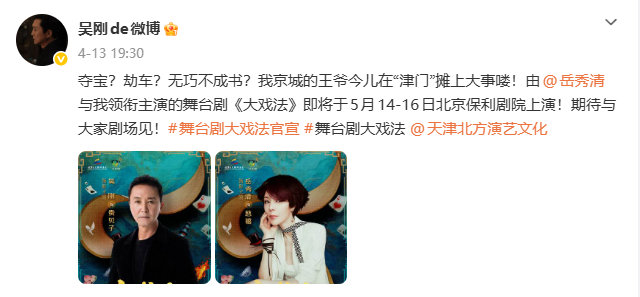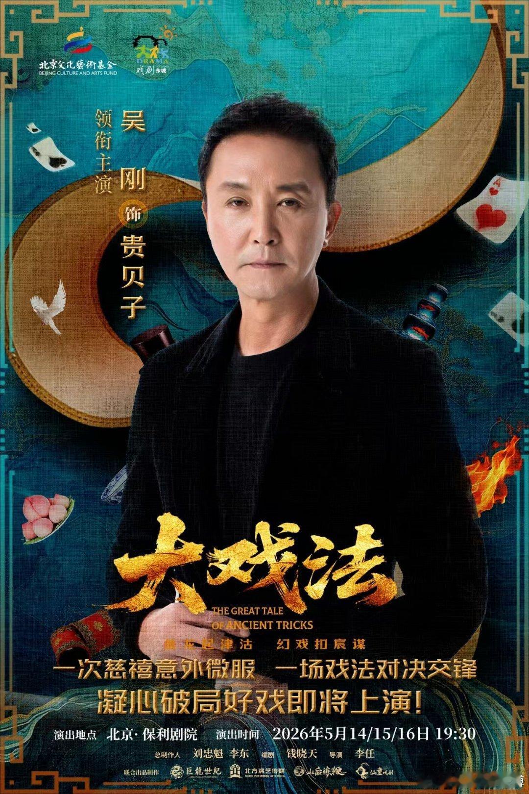 神仙夫妻档首度话剧同台吴刚岳秀清夫妻档首次联袂主演话剧《大戏法》,岳秀清饰慈禧遇戏法大师,吴刚化身贝勒爷上演权谋交锋,非遗古彩戏法碰撞舞台叙事超惊艳!4月17日开票,5月北京保利剧院首演,坐等实力派同台!