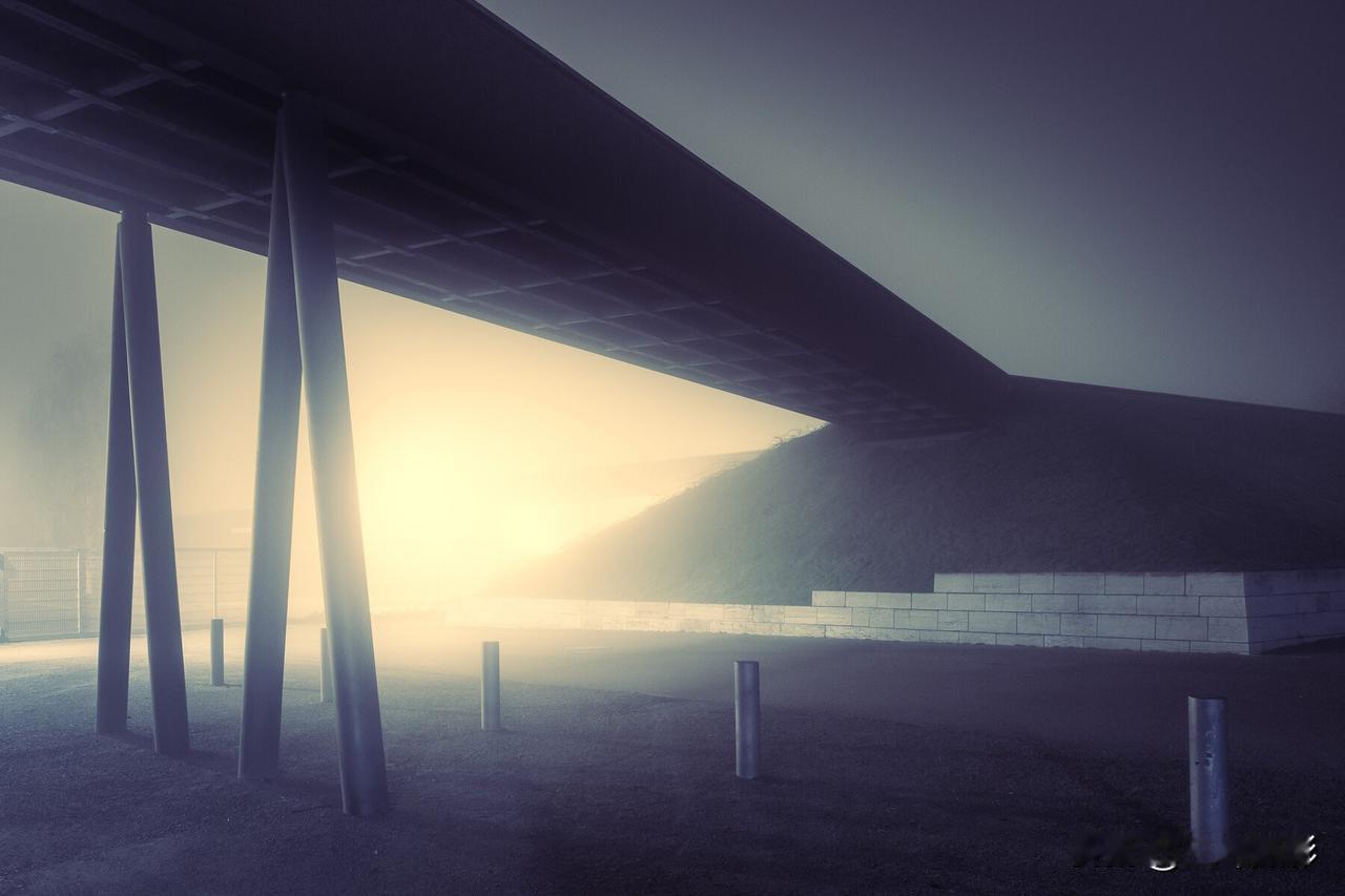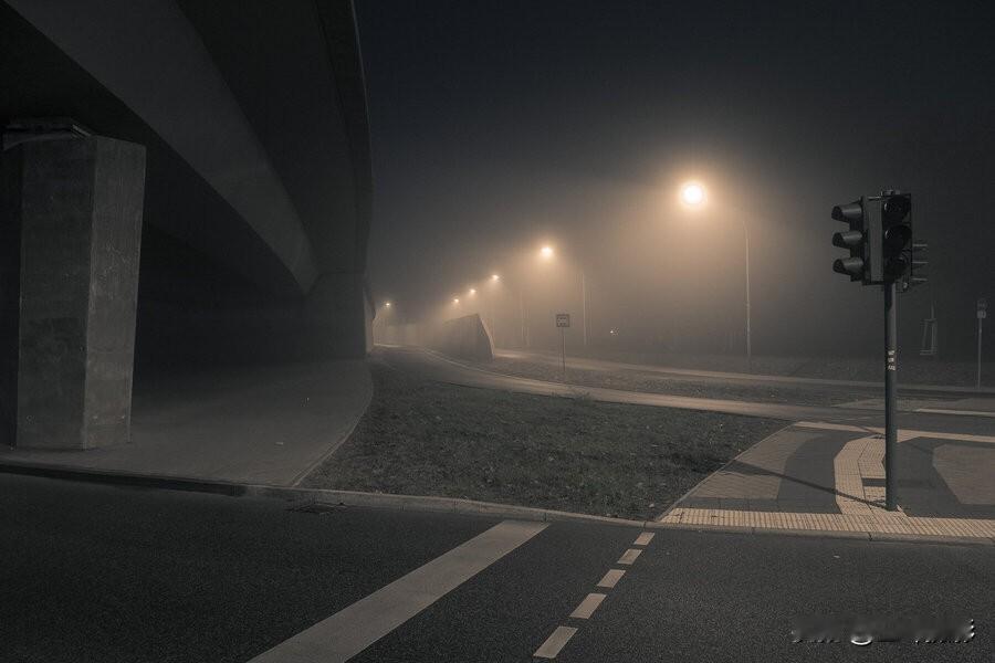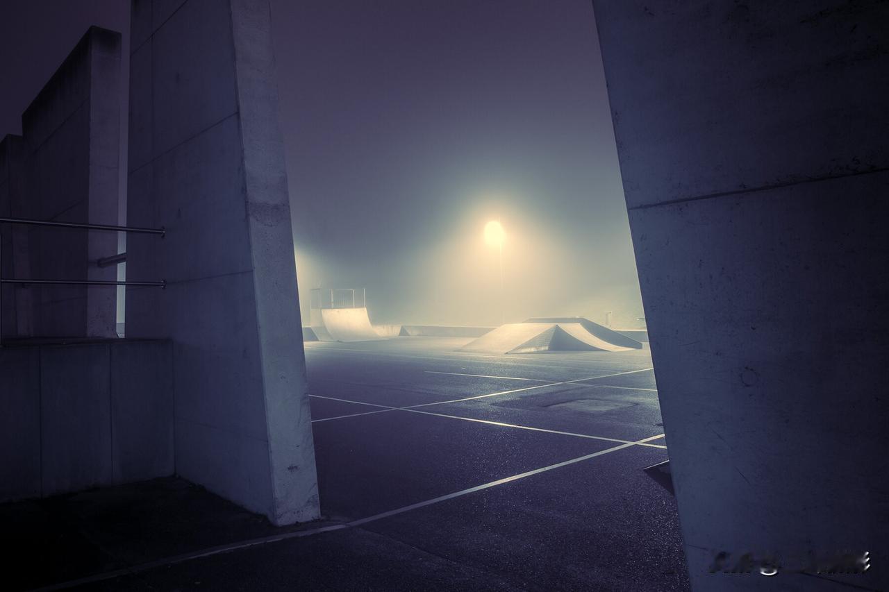 空无一人的街道、被雾气包裹的桥梁、孤独矗立的建筑……他用冷色调和朦胧的光线,营造出一种超现实的孤独感,让我们看到了城市在沉睡时,最真实也最脆弱的一面。