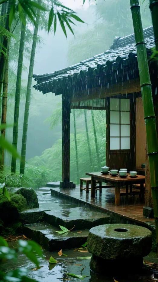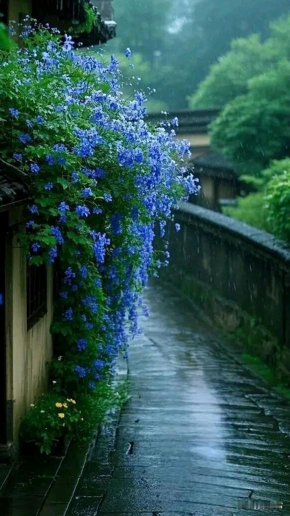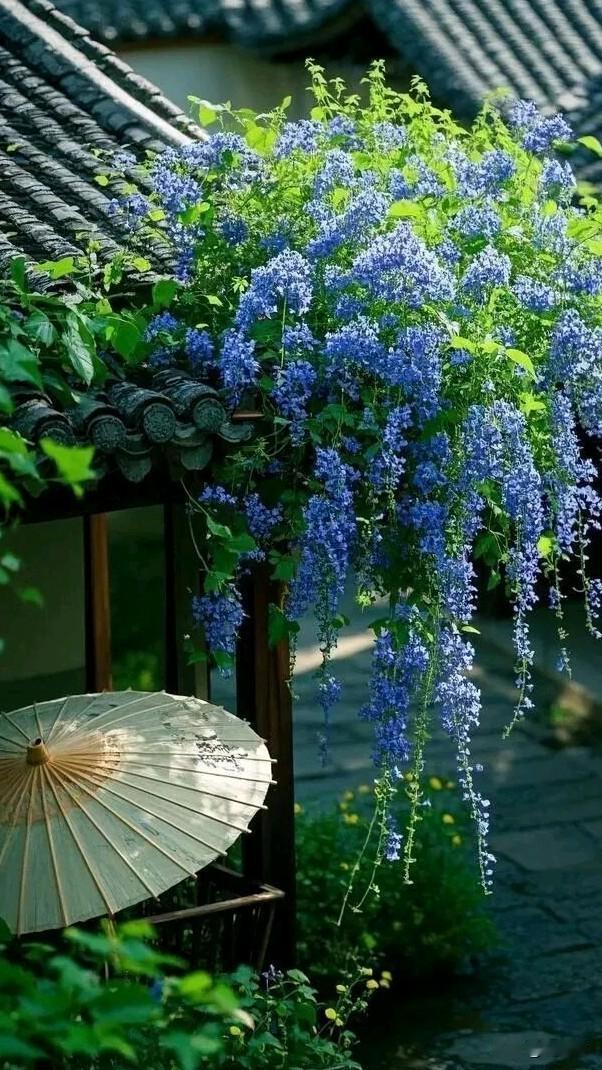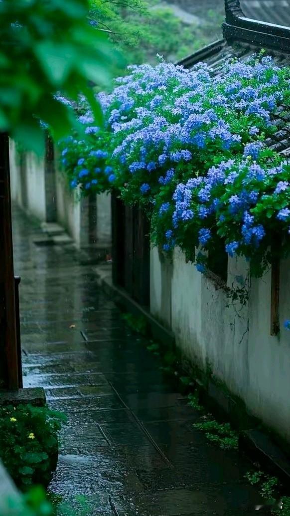 雨落青檐,尚有芒鞋失旧径; 花垂黛瓦,应无贝叶覆新阶。 雨落古檐 青檐听雨 梧桐