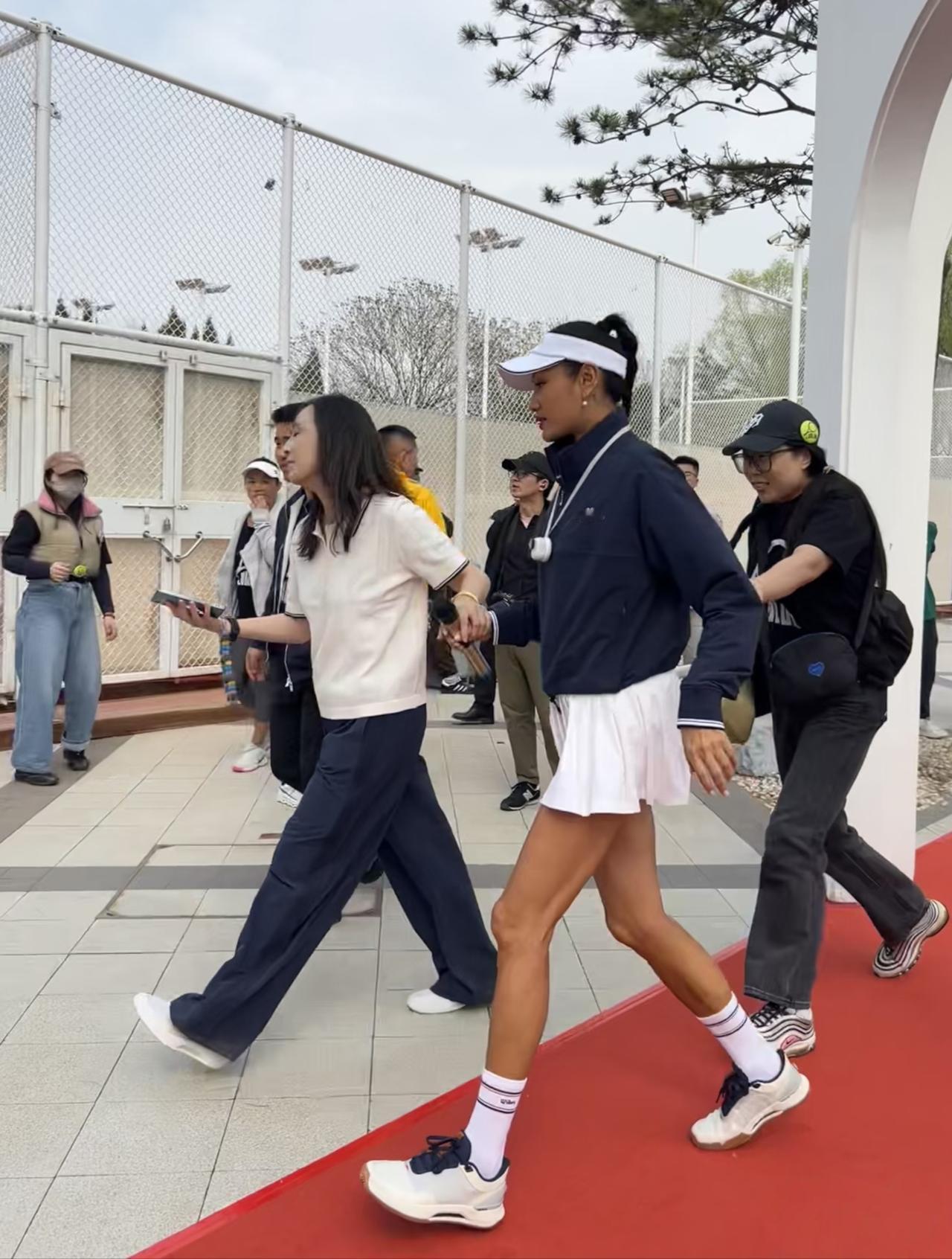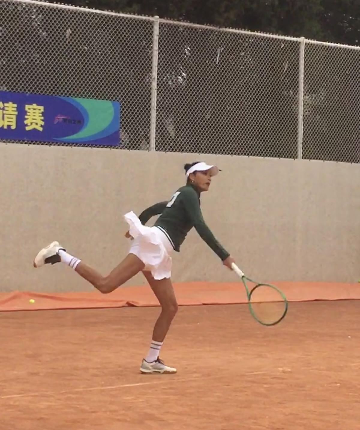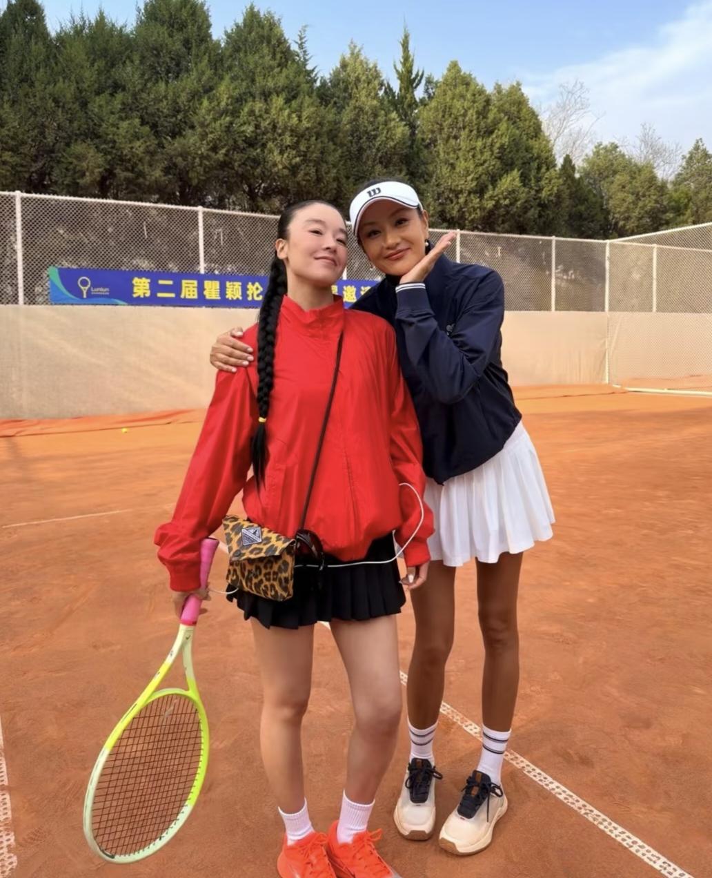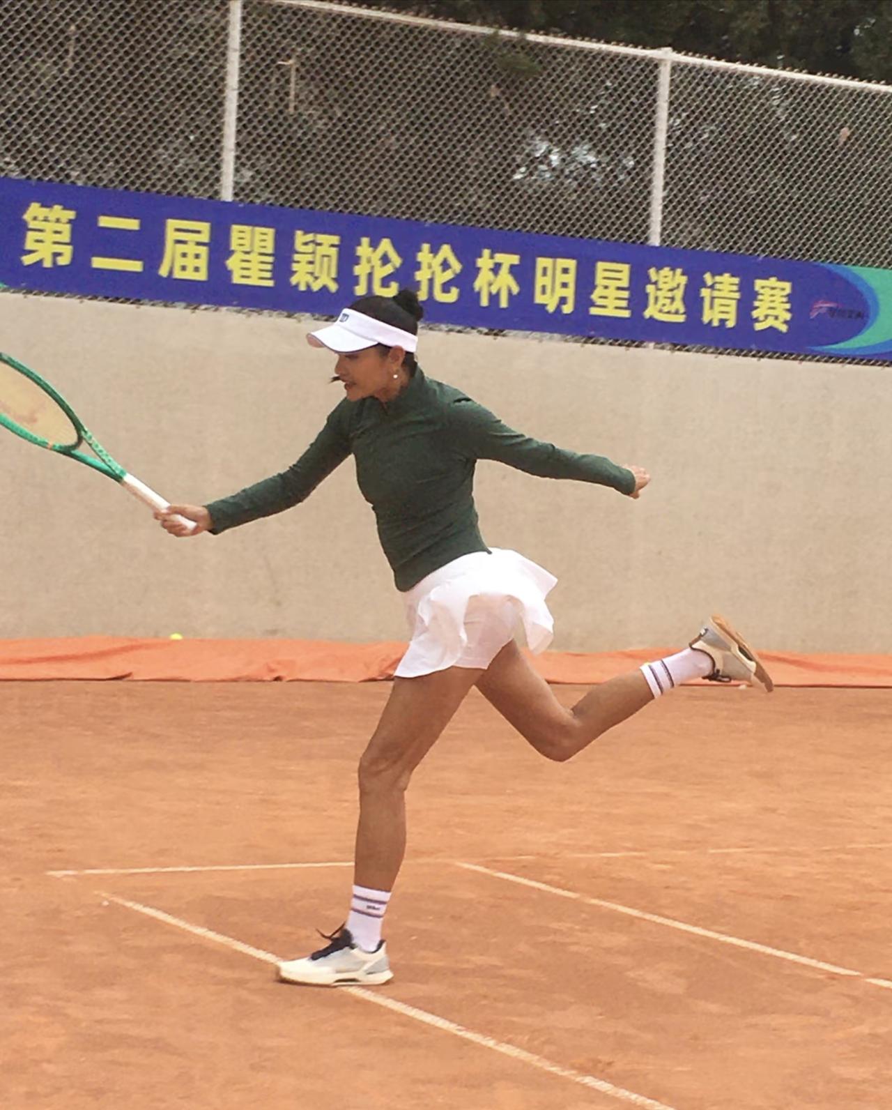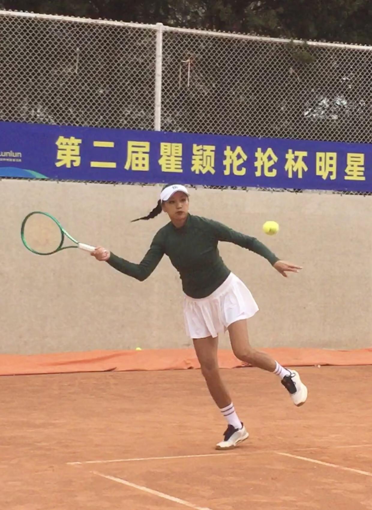 54岁瞿颖和朱丹打网球比赛,她穿着一身球服,身姿挺拔,整个人看起来好年轻,充满了活力。