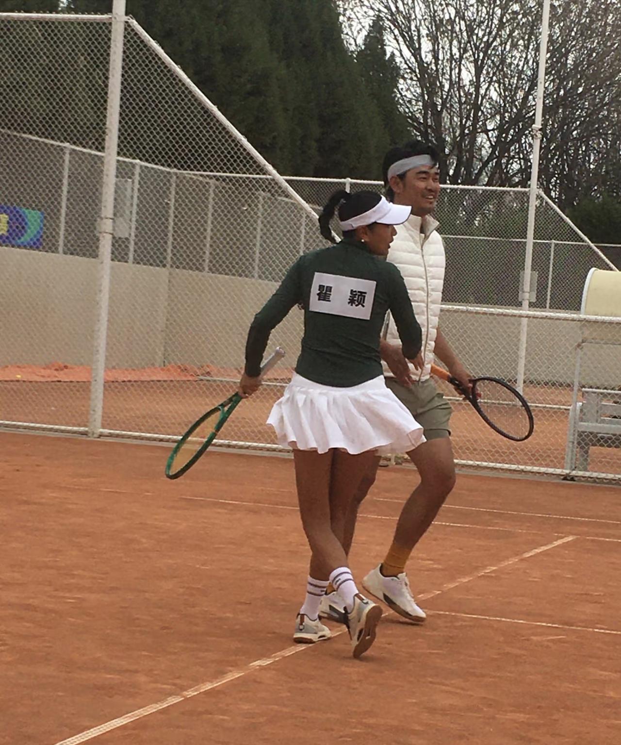 54岁瞿颖和朱丹打网球比赛,她穿着一身球服,身姿挺拔,整个人看起来好年轻,充满了