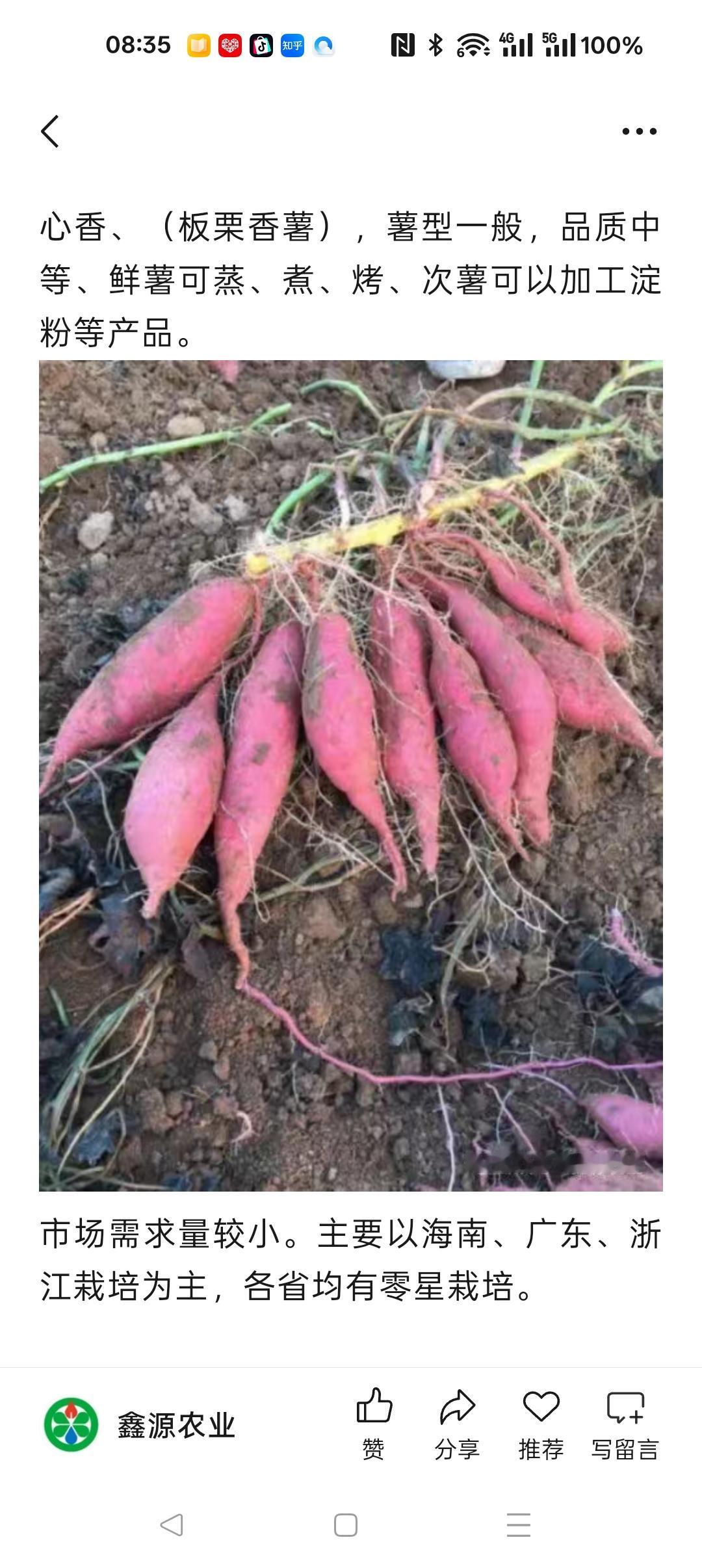 心香、(板栗香薯),香味浓无丝,北方地区种植甜度可达30~35度,品质中等、鲜薯可蒸、煮、烤、次薯可以加工淀粉等产品。
