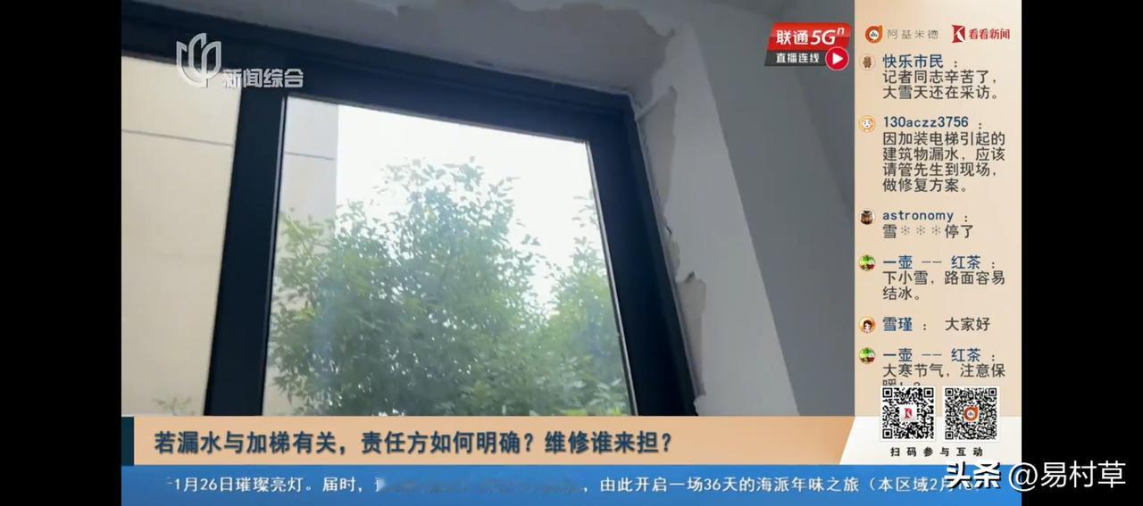 不知道为什么总给我推上海加梯出问题案例。又来一个,24年8月投入使用,24年10-11月下雨天发现墙体漏水鼓包。代建方态度挺好呀,人家说要负责,但17个月都没负责了。各种涉及各个施工程序,需要怎样怎样。那些业主也跟二哈一样,这么大面积严重漏水还要等,不抓紧解决。你指望万一楼因为加梯出了问题他们站出来负责?做梦呢吧。那些总跟我说上海加梯没一例出问题的家伙肯定看不见这些新闻。加装电梯这个事核心问题一直都是侵权,且侵权主体没有能力也不会就出现的问题进行赔偿。谁敢赌谁赌呗,反正中招你活该,你想赌的[笑哭][笑哭][笑哭]你是否支持老旧小区加装电梯 底楼业主阻挠加装电梯,有理吗?