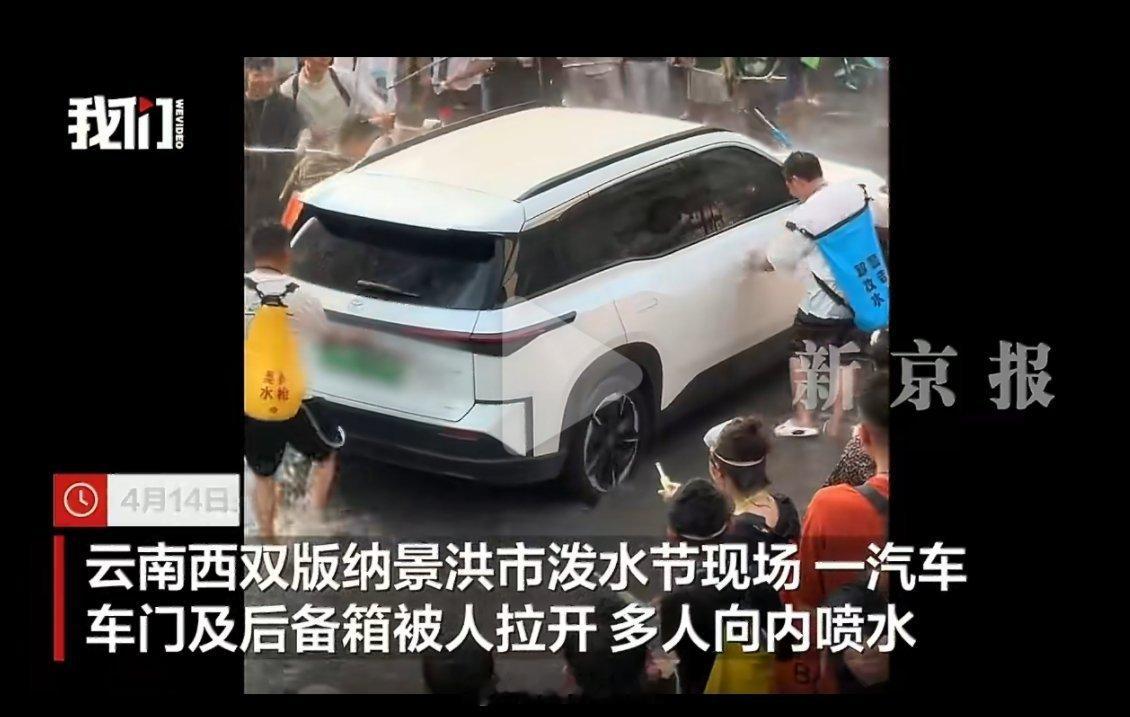 这样的泼水节已经变味了!云南泼水节,一辆辽A的白色新能源车路过,前一秒大家还只是