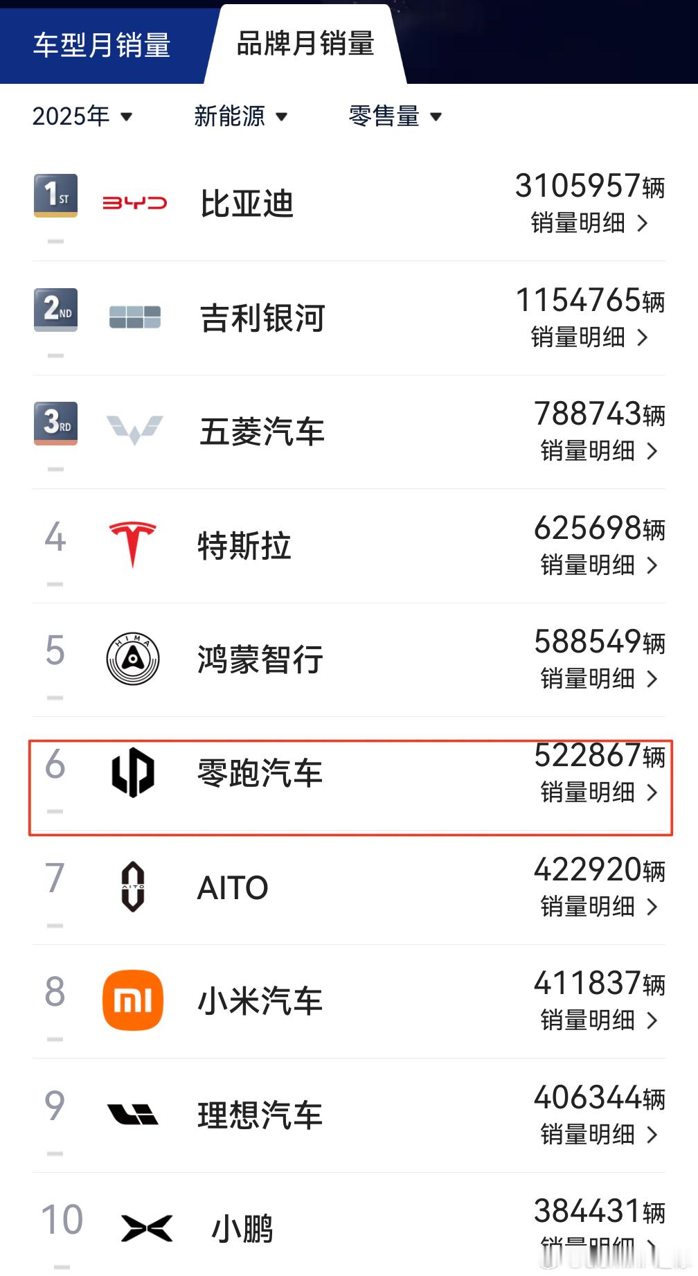 零跑竟然是25年新势力的销冠(除去鸿蒙智行这种几个品牌加一块的)