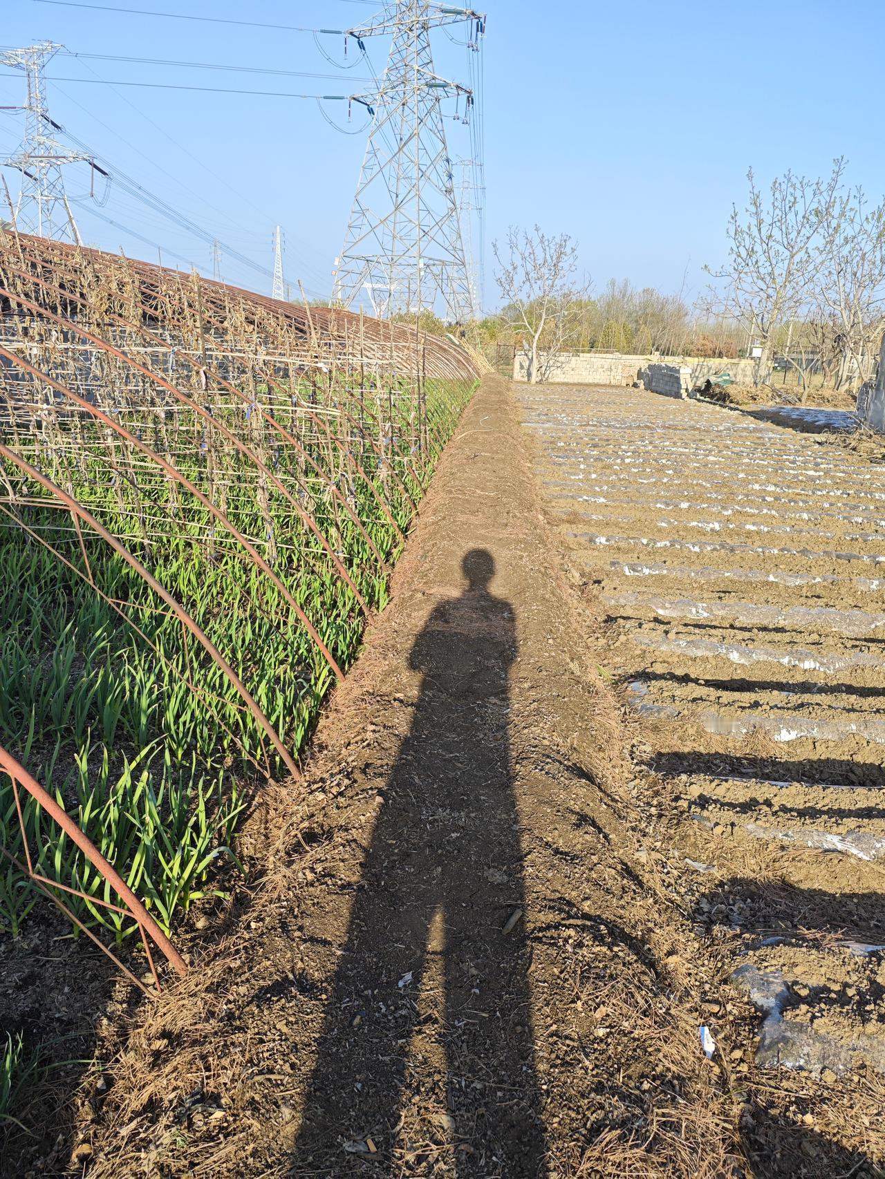 春天到来,万物更新,蒜苗长大,菠菜变绿,我站在地里。西阳把我的影子拉长,又到时间该回家了。