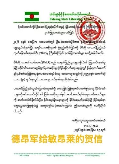 德昂军这支缅北民地武真让人捉摸不透。网友调侃为“平头哥”,敢硬扛任何对手。从2023年10月27日开始,就与缅甸国防军缠斗了两年时间,后因寡不敌众,加上装备上的差距,不得不割地求和,以求自保。3月中旬,又与自己的盟友果敢同盟军在贵概发生冲突,被人家胖揍了一顿,伤亡一百余人,在贵概的地盘丧失殆尽。总之,德昂军给人感觉是该出手时就出手,敢打敢拼,刚猛而少智。但有时又显得左右逢源,投其强者所好。敏昂莱当选缅甸总统后就匆忙发去了贺电,而自己的兄弟联盟若开军与果敢同盟军到现在没有向敏昂莱作任何表示。要知道,同盟军与缅军签定停火协议要比德昂军与缅军签定临时停火协议足足早一年。