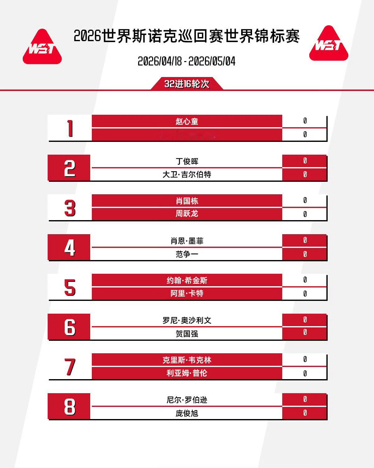 斯诺克世锦赛签表出炉赵心童首轮对阵海菲尔德斯诺克丁俊晖克鲁斯堡世锦赛