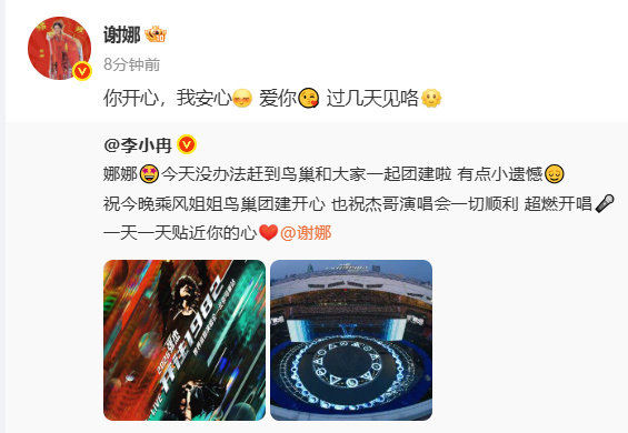 谢娜回应李小冉没法一起团建 乘风2026 哇哦!李小冉因故不能参加鸟巢团建,用歌词向谢娜表达遗憾,谢娜马上用歌词接上,这隔空对唱《心愿便利贴》太戳心啦!李小冉