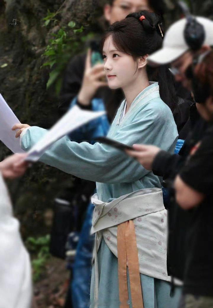 李一桐《金枝》今日路透,新皮肤好素,脸好美