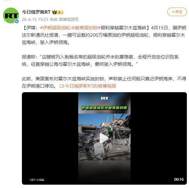 伊朗法尔斯通讯社发了条消息:4月15日清晨一艘被美国制裁的伊朗超级油轮,全程开着定位,大摇大摆穿过霍尔木兹海峡,顺利进了伊朗自己的领海。
