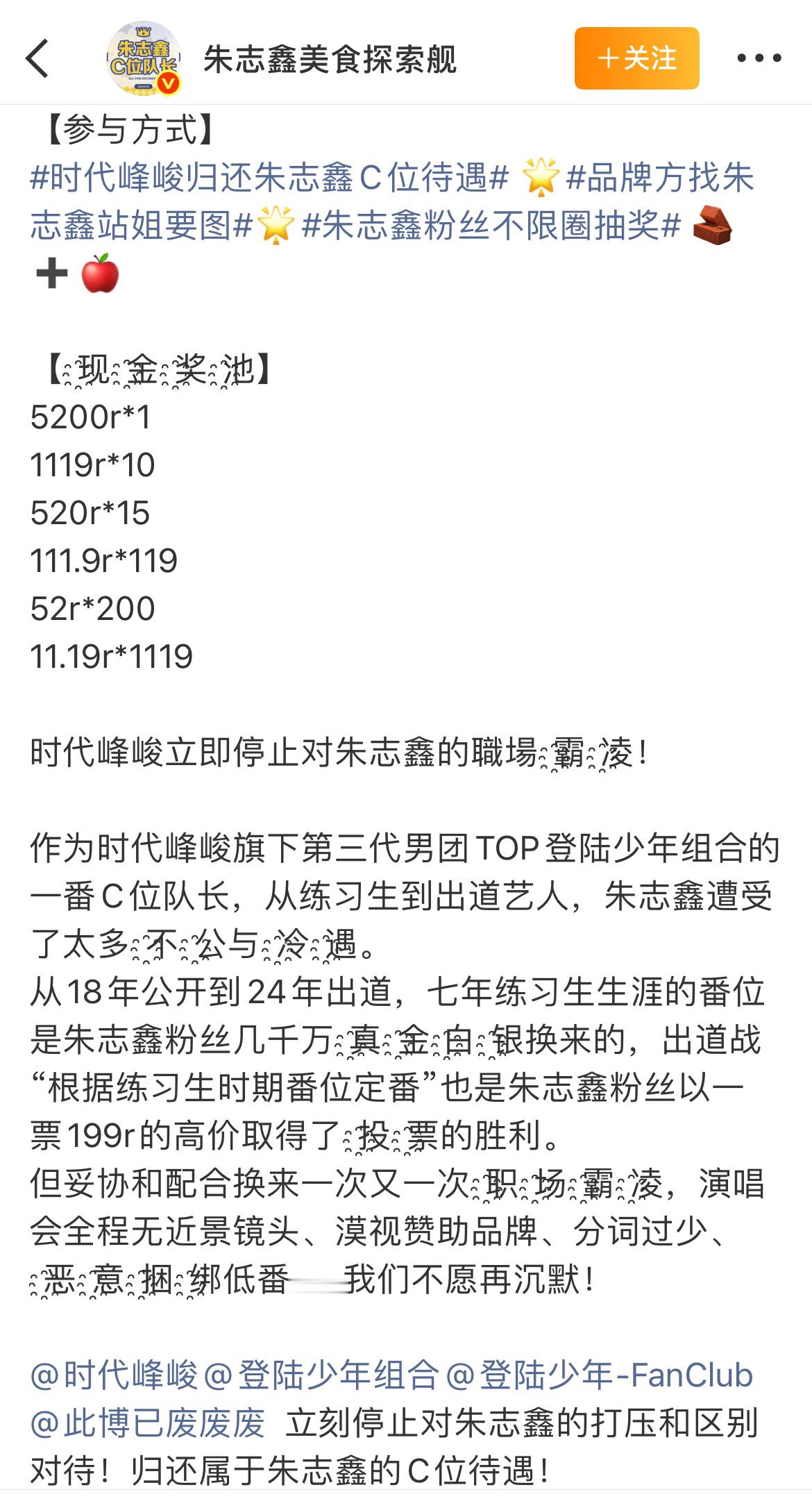 朱志鑫粉丝不限圈抽奖 朱志鑫粉丝不限圈抽奖了