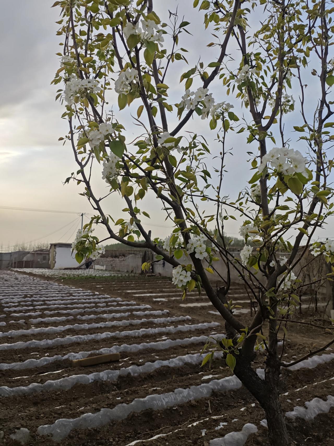 方,土墙与电线衬着梨花,没有刻意 的布景,却让乡野的烟火气和梨花的 清雅完美相融。