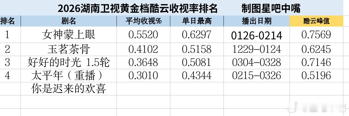 《蜜语纪》酷云实时峰值暂列2026年卫视频道年冠!