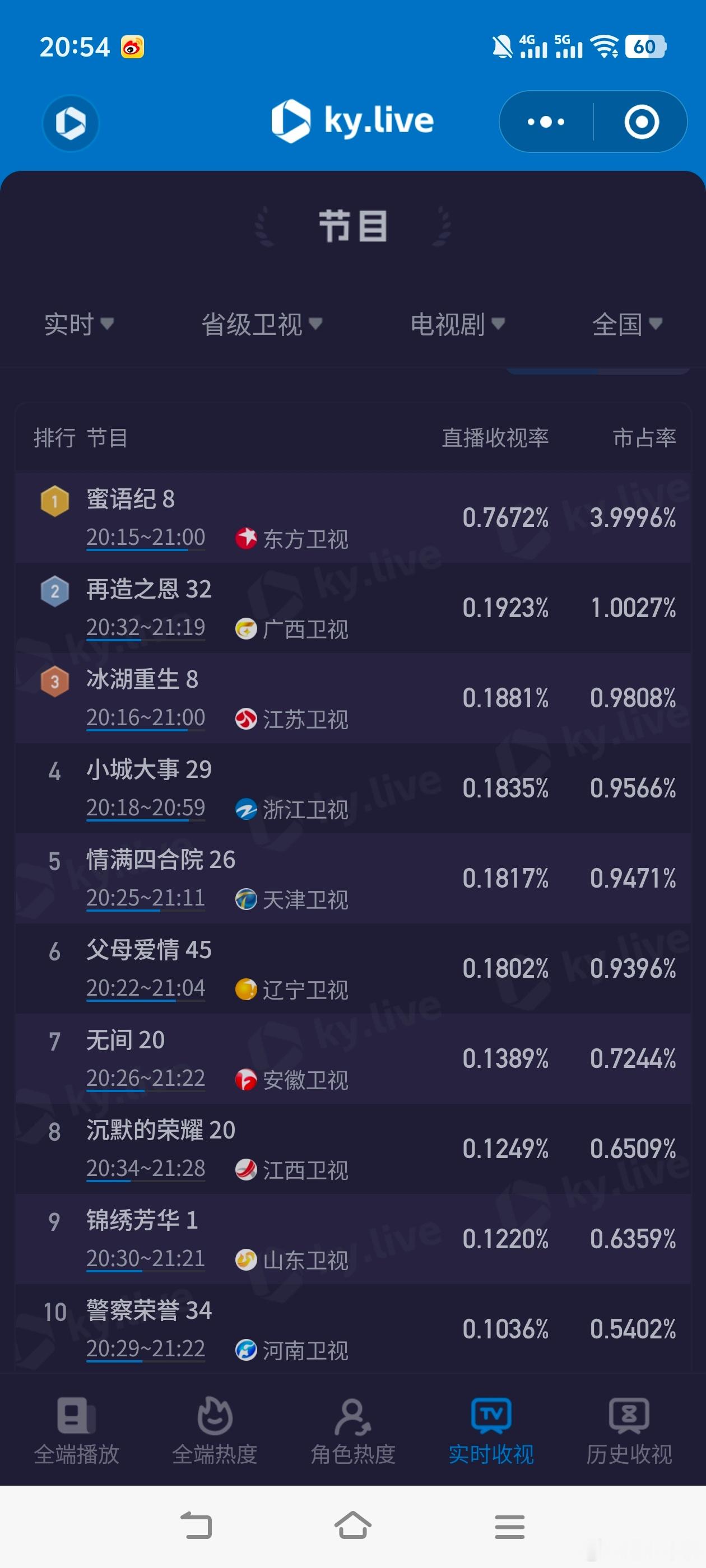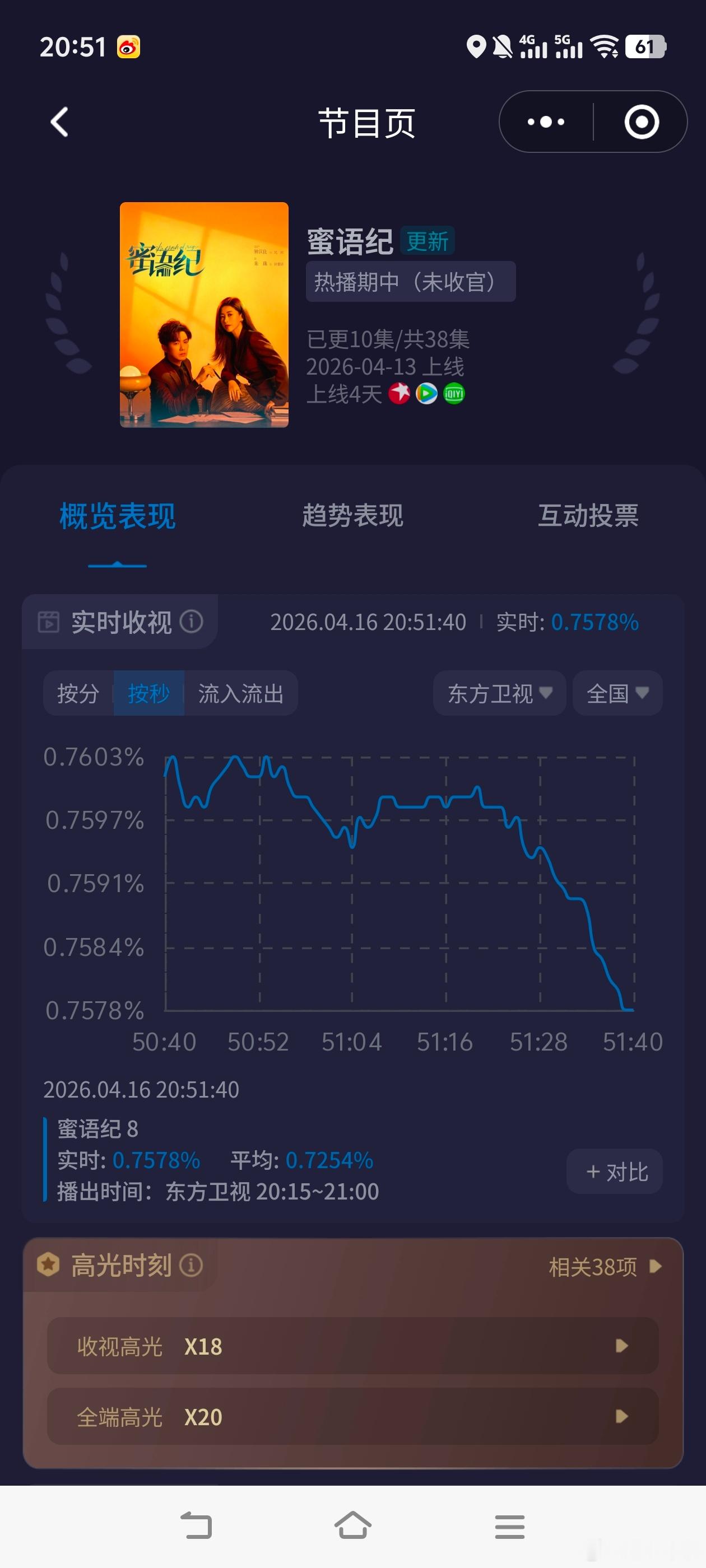 蜜语纪 收视率太猛了!酷云峰值突破 0.76,刷新今年卫视酷云峰值纪录!破1亦可