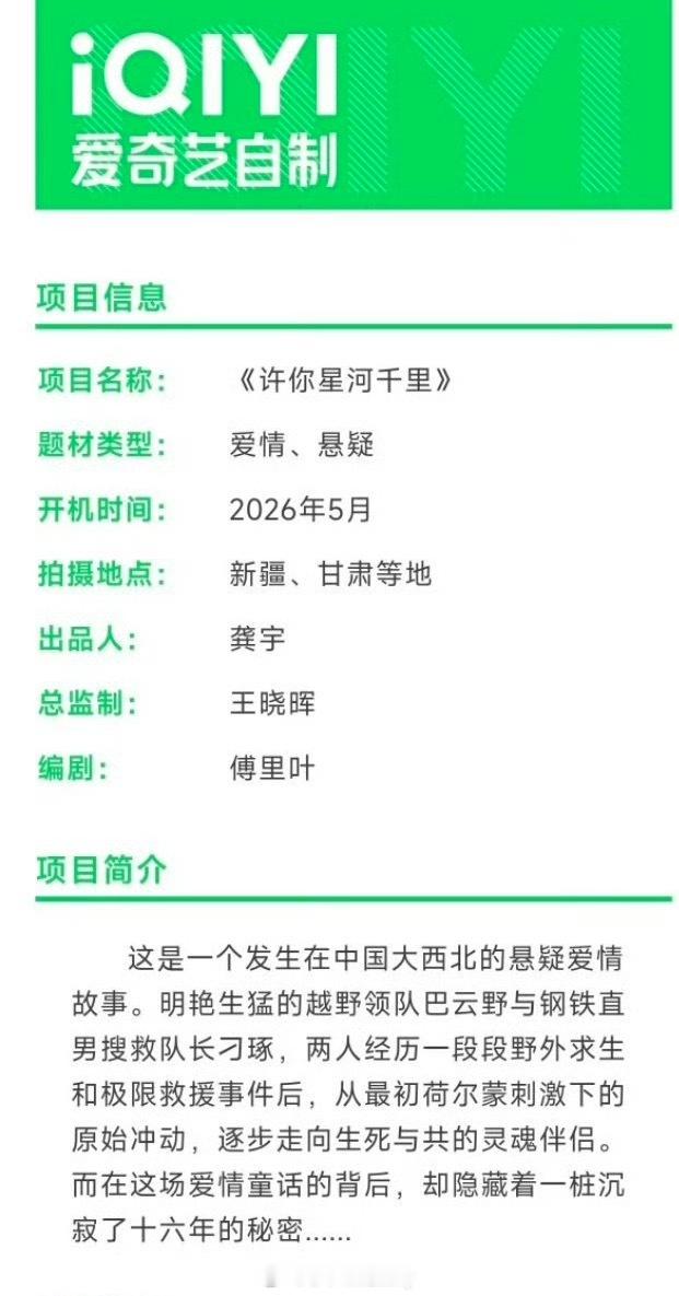 🍉丞磊、沈羽洁 《许你星河千里》组训出来了,出品方:爱奇艺、恒星引力