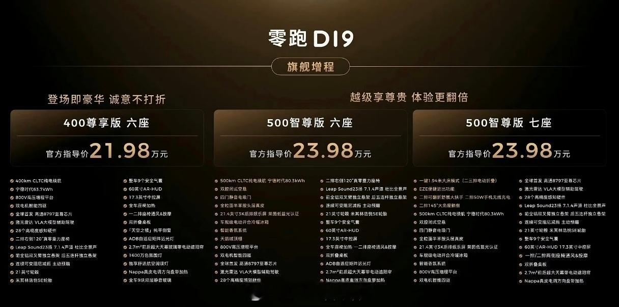 零跑D19,这个尺寸(参考图二)、配置,这个价格,掀桌子干了,今年全尺寸SUV,各家都到齐,太卷了。