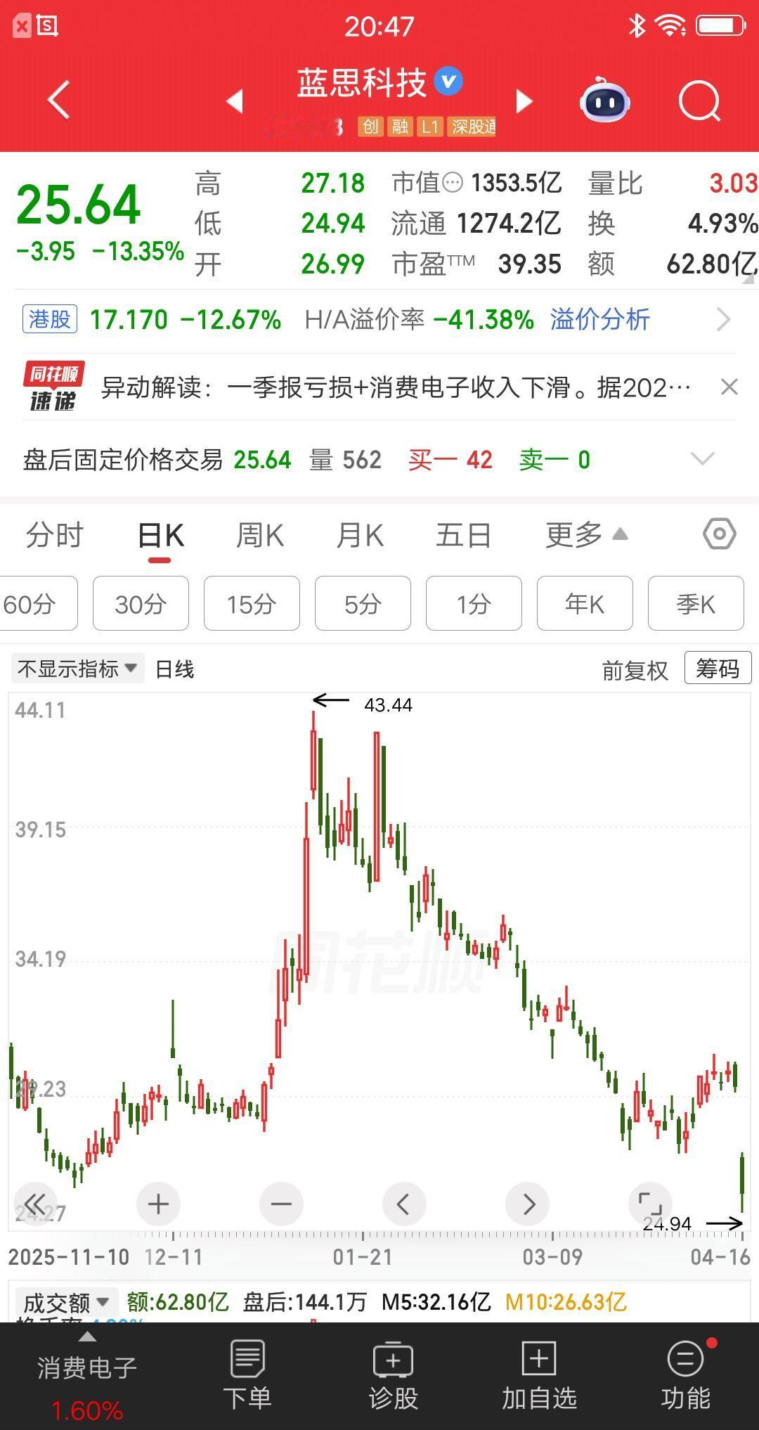 有人反问他,难道不看大跌的原因吗?一季报营收141亿下降17%,利润亏损1.5亿骤减1.3倍。公司明确说了,业绩由盈转亏是因为,智能手机和电脑类收入减少。这就是基本面出了问题,主力都跑了散户去接盘。