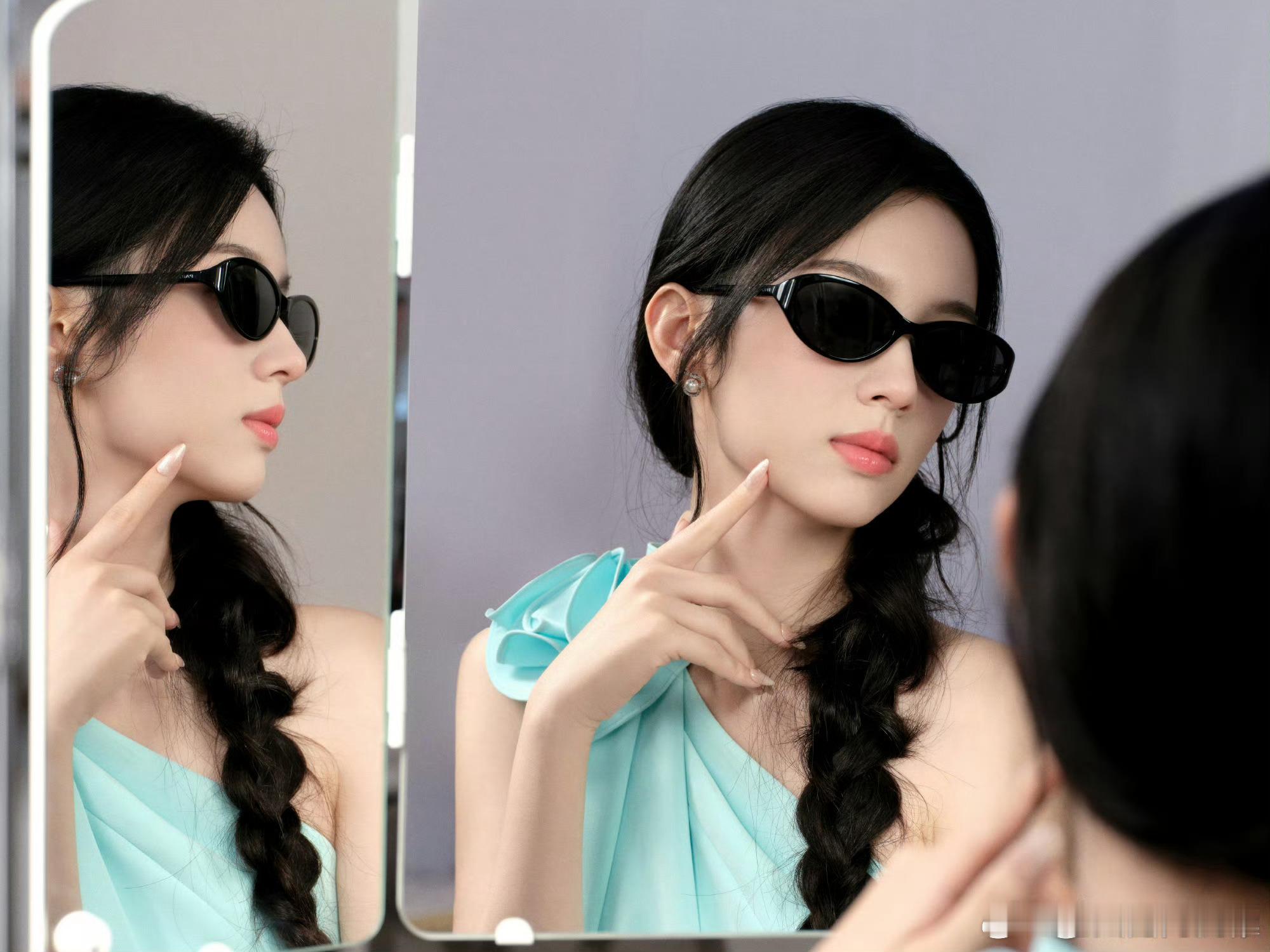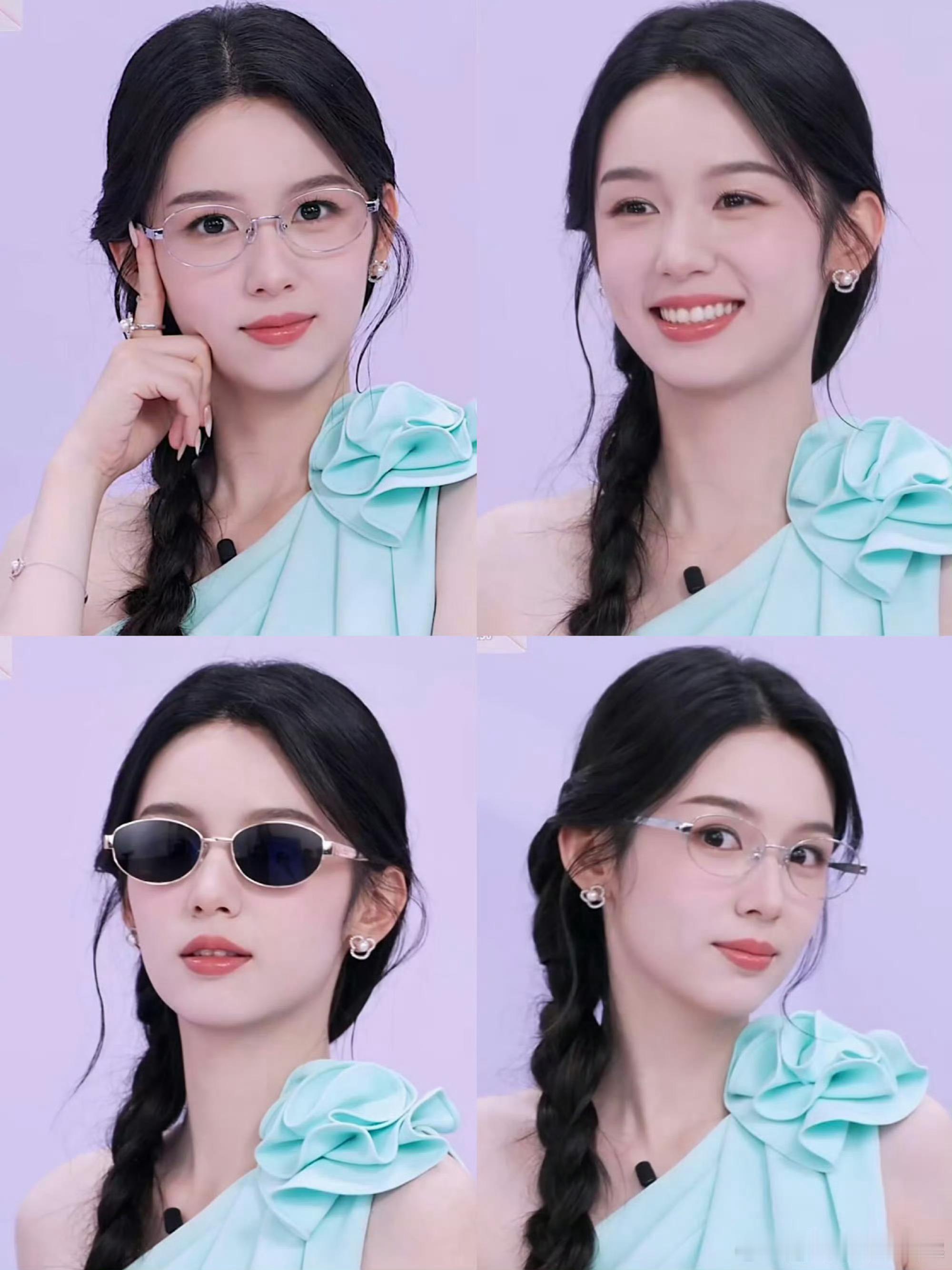 周也镜头表现力绝了自带清冷疏离感,薄荷蓝长裙搭配麻花辫仙气十足,墨镜加持酷感拉满,眼镜一戴温柔加倍,天生适合镜头,每一帧都值得收藏。