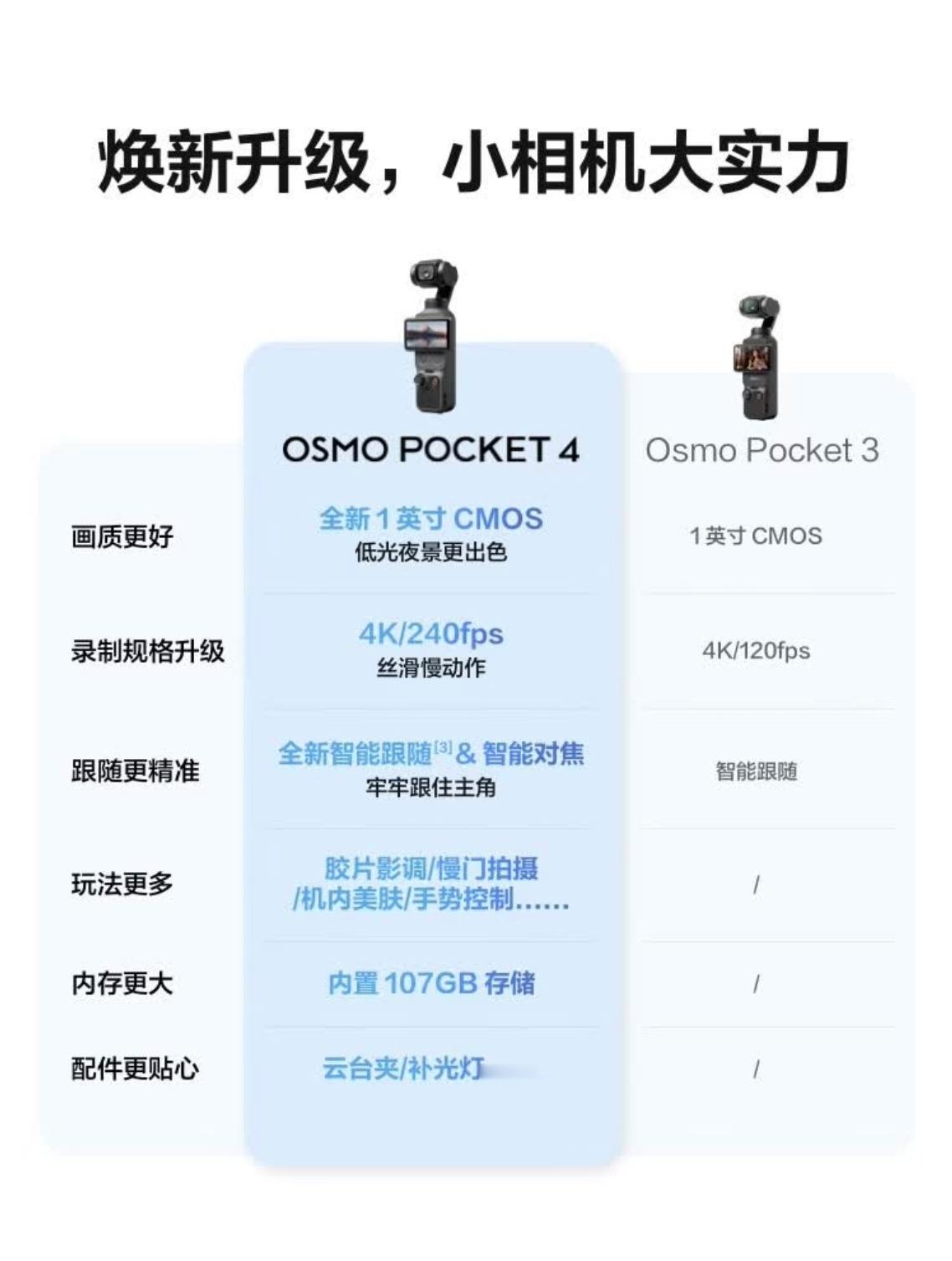 升级蛮大的,现在想买就一步到位 pocket4 吧,只要原价都值。 新的实体按键