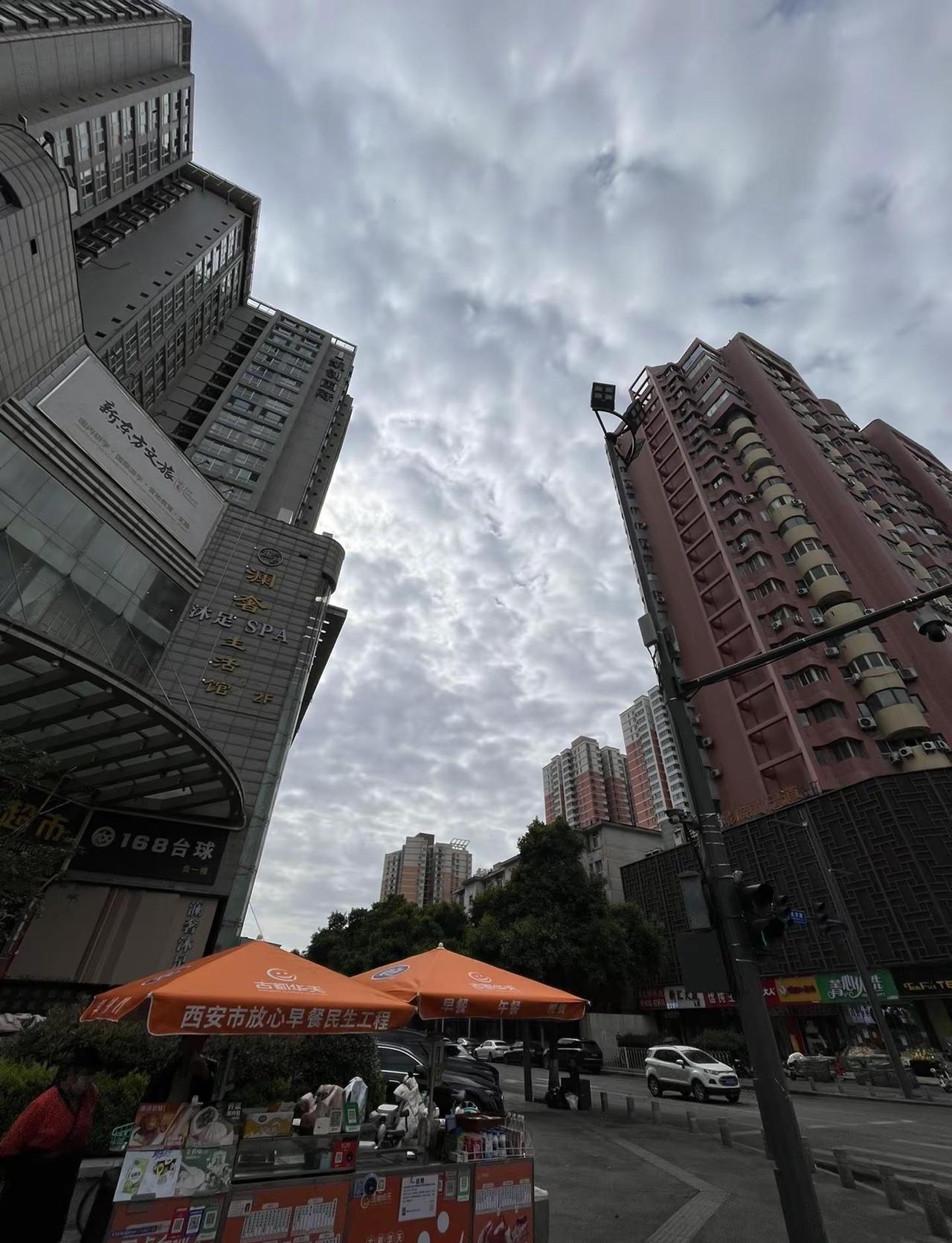 西安雨过天晴 天气晴朗阳光明媚 天气西安科技路地铁口