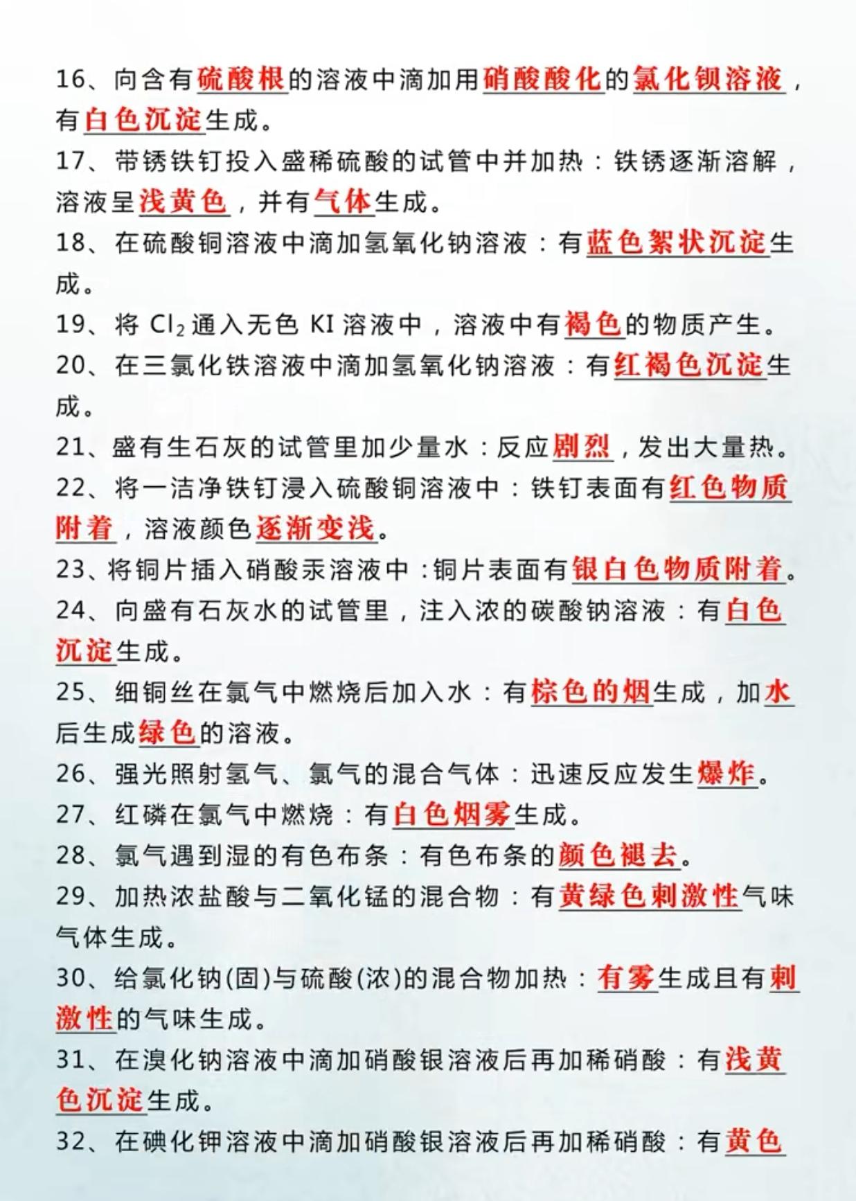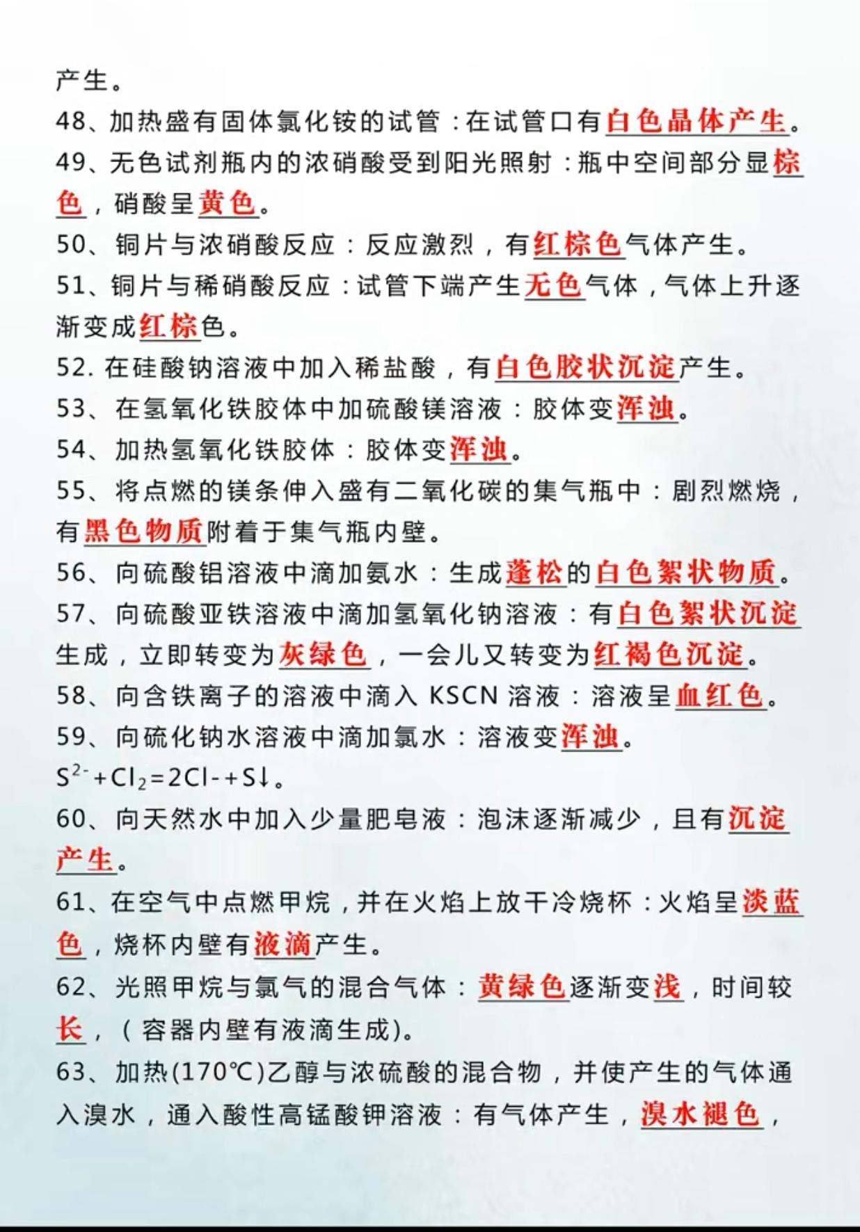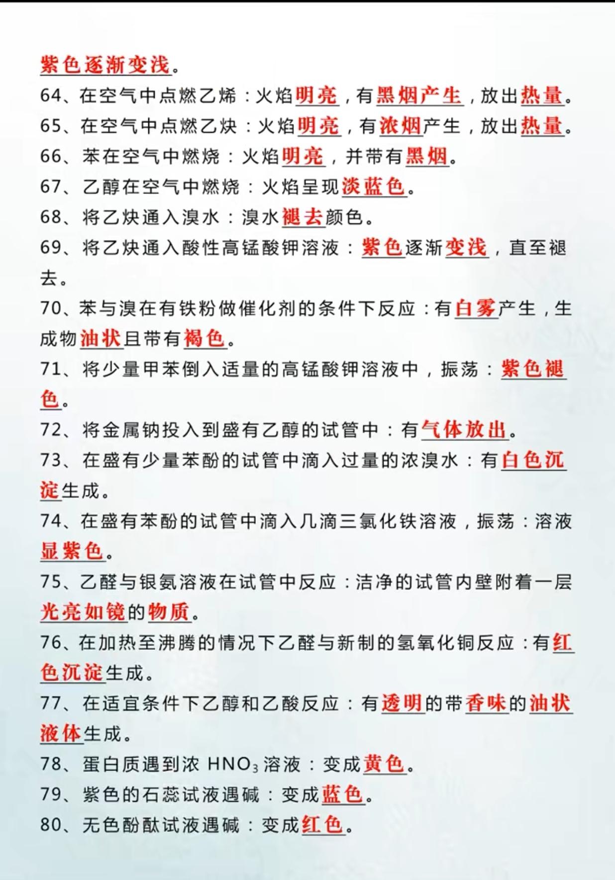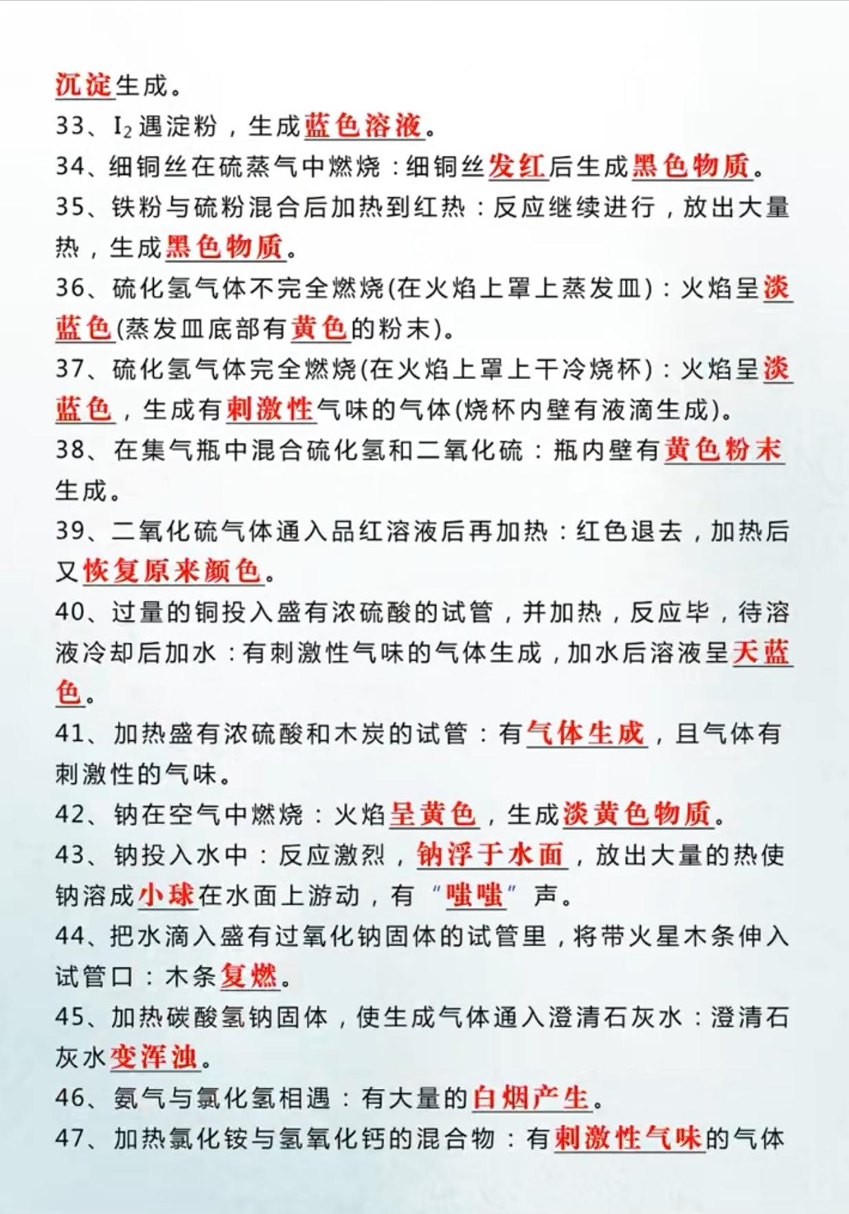 中考化学80个实验现象考点