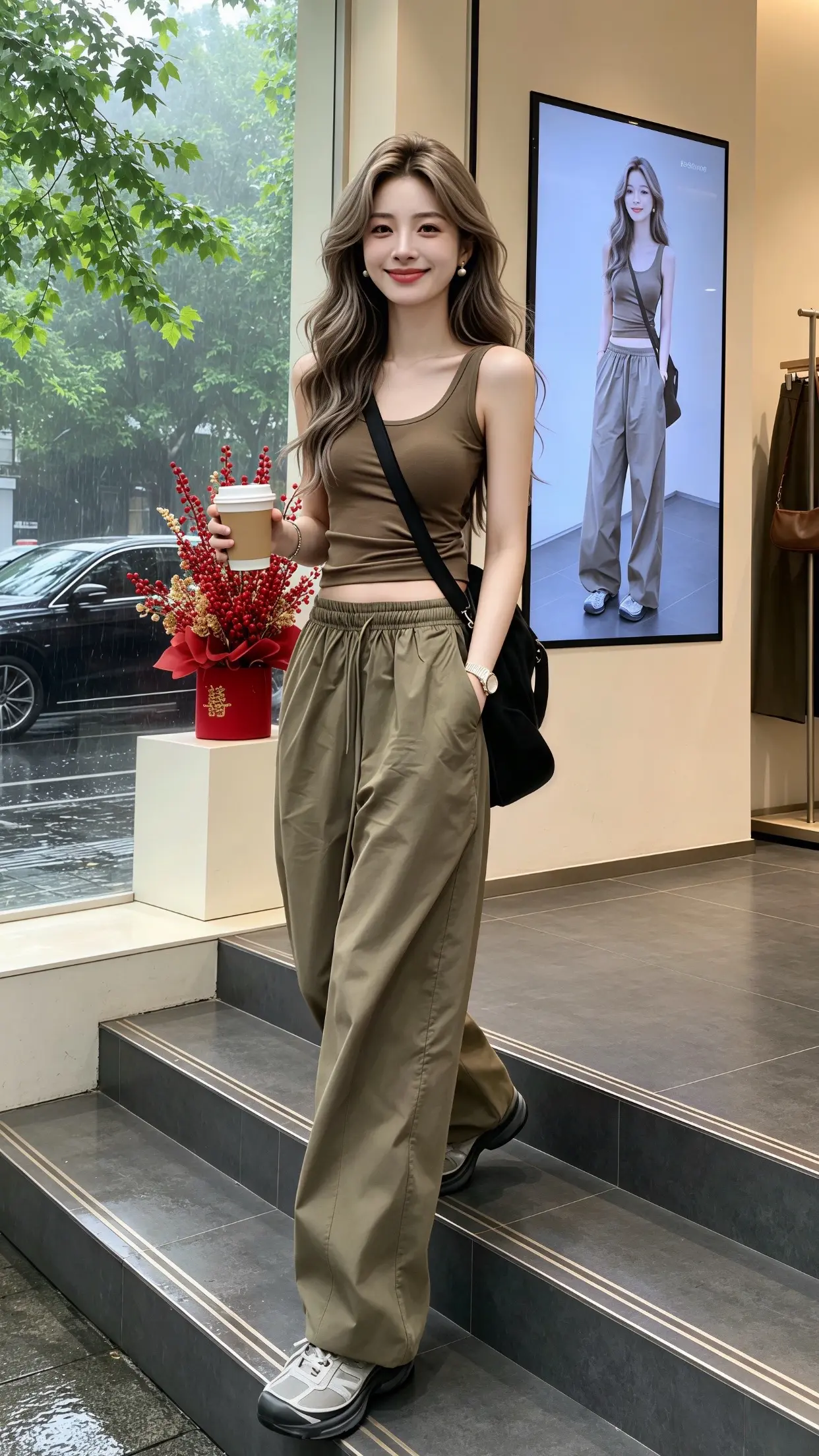 回头率超高的时髦老钱风!这组大地色系穿搭太绝了,浅咖针织Polo衫搭配藏青阔腿
