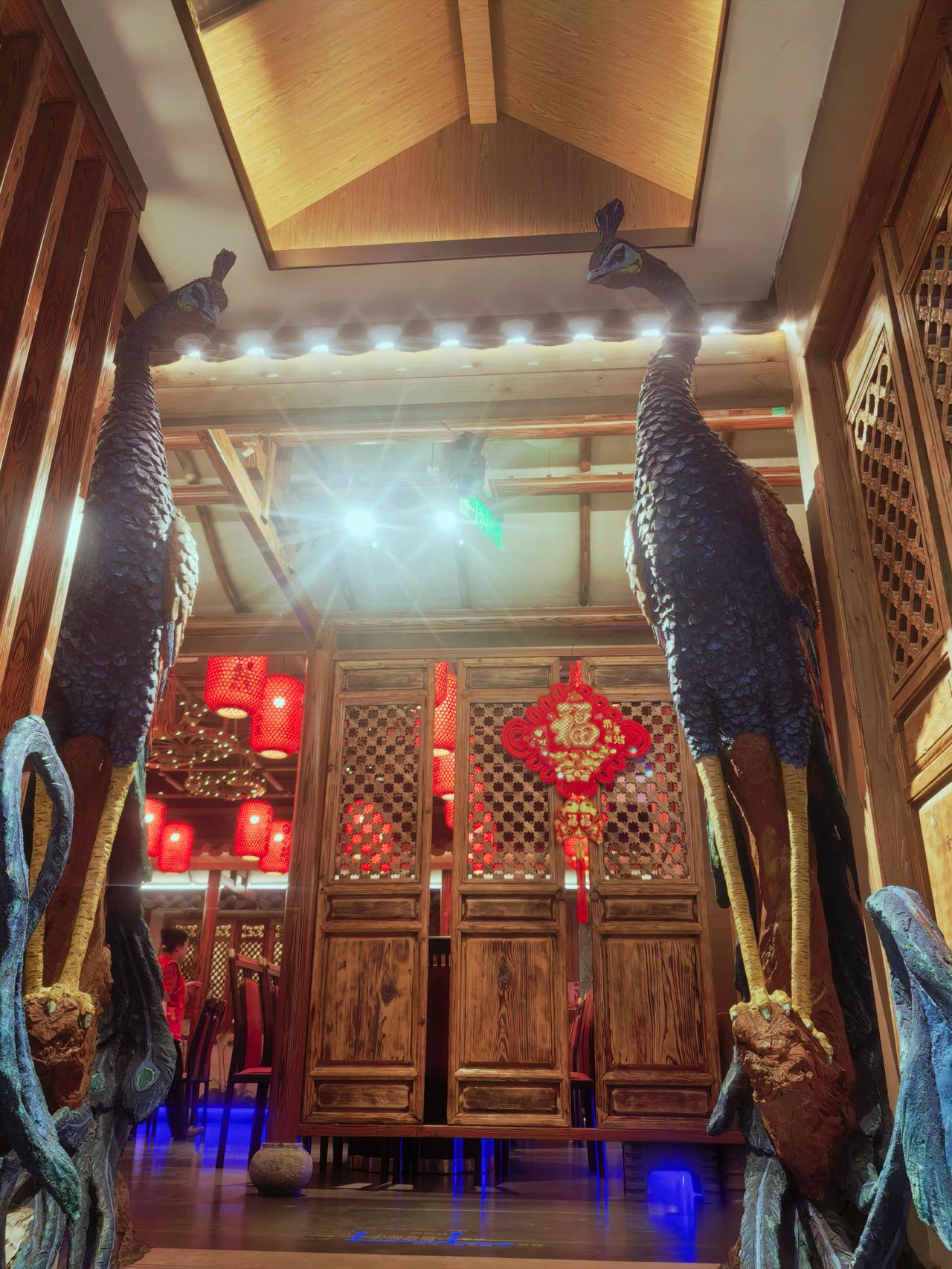 一进门就被质朴又温暖的民族风戳中,藤编灯笼搭配精致木雕,1上2楼的双孔雀装饰氛围感直接拉满,吉祥又有特色,拍照也很出片~没有刻板的商务感,不管是家庭聚会还是朋友聚餐,氛围都松弛又舒服。