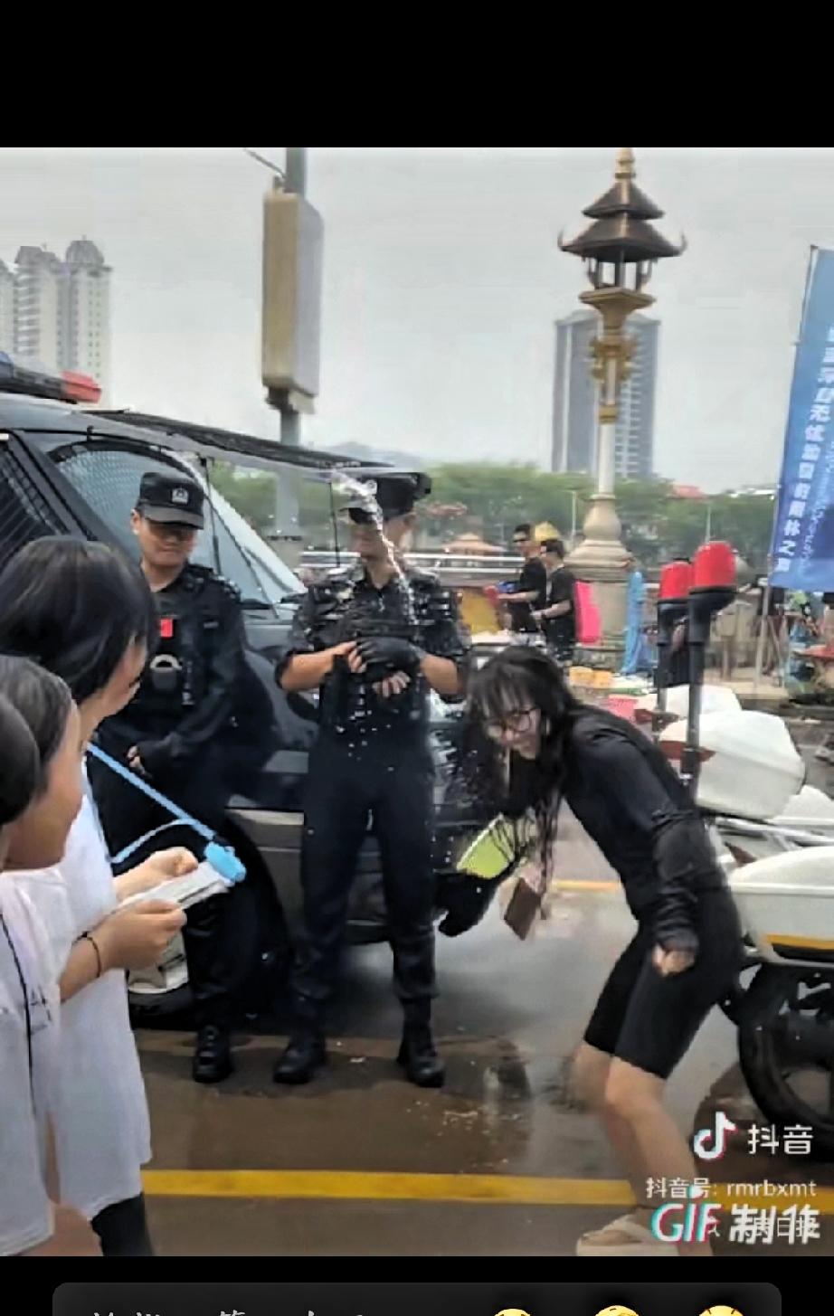 “上人民日报了!”云南西双版纳,一女子拿着装水的盆,问执勤特警“可以泼你们一下吗?”