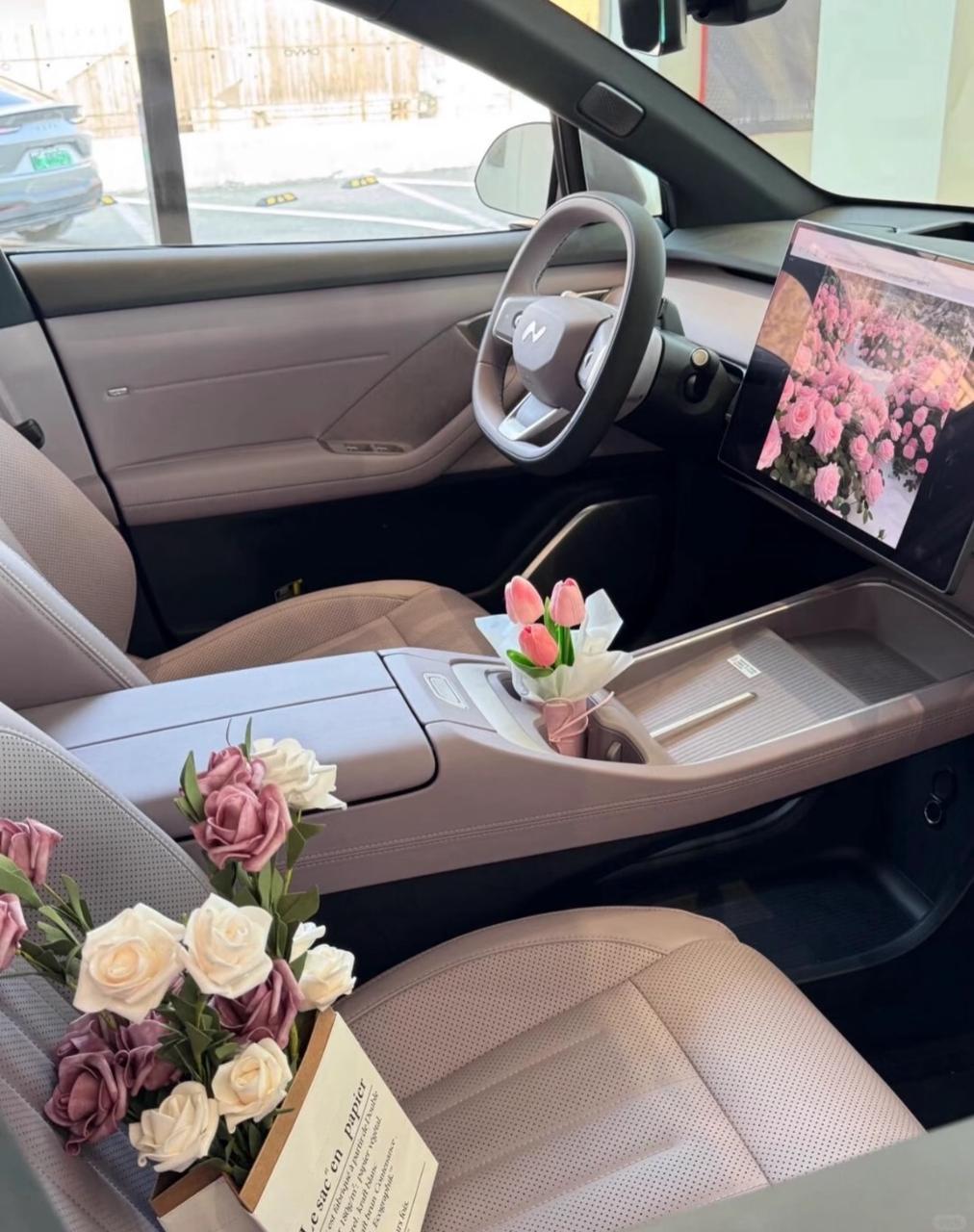 车里氛围也很好,内饰颜色柔和,方向盘也小巧,整个空间坐着特别舒服。