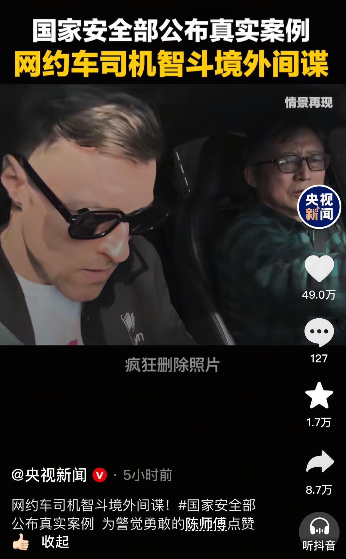 这是国家安全部公布的一起真实案例,讲述了网约车司机陈师傅智斗境外间谍的故事。陈师傅接单时,上来俩外籍乘客,一路聊着就往郊区开。路过部队营区的时候,这俩人突然掏出手机,对着营区大门、围墙还有周边地形疯狂拍照,那架势看着就不对劲。陈师傅没声张,悄悄把两人的外貌特征、说话的语气都记在了心里。