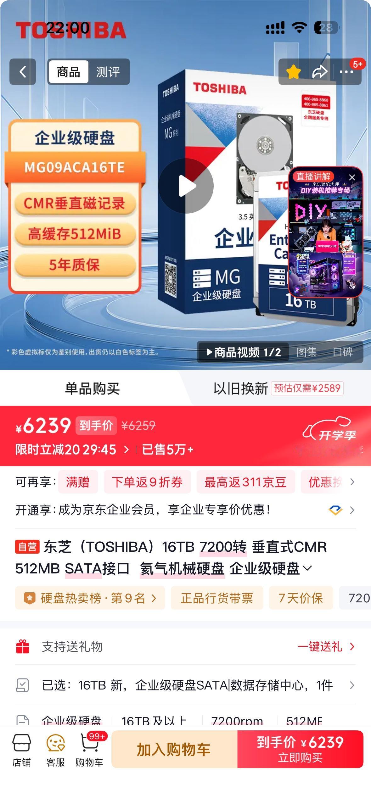 一年前的东芝16T的硬盘才2000元,现在都6000多元了,完全涨价疯狂了。
