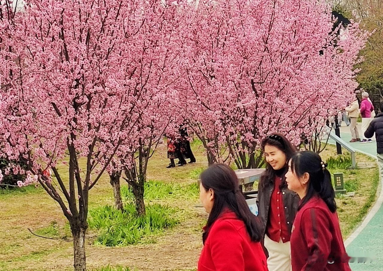 漫步其内,鲜花满园,繁花似锦,城市与自然景观无缝衔接。无需刻意找打卡点,许多市民和游客纷纷在粉红色的美人梅树下或拍摄视频、拍照留影,或席地休憩。园内入口西北侧有一棵棵亭亭玉立的玉兰树,那洁白无瑕的花瓣或紧或松地聚簇成一朵朵花苞,散发着淡淡的清香。同是玉兰树,有的花蕾则呈现出粉红色含苞待放,有的已完全盛开,花瓣质感细腻,拍照效果极佳。