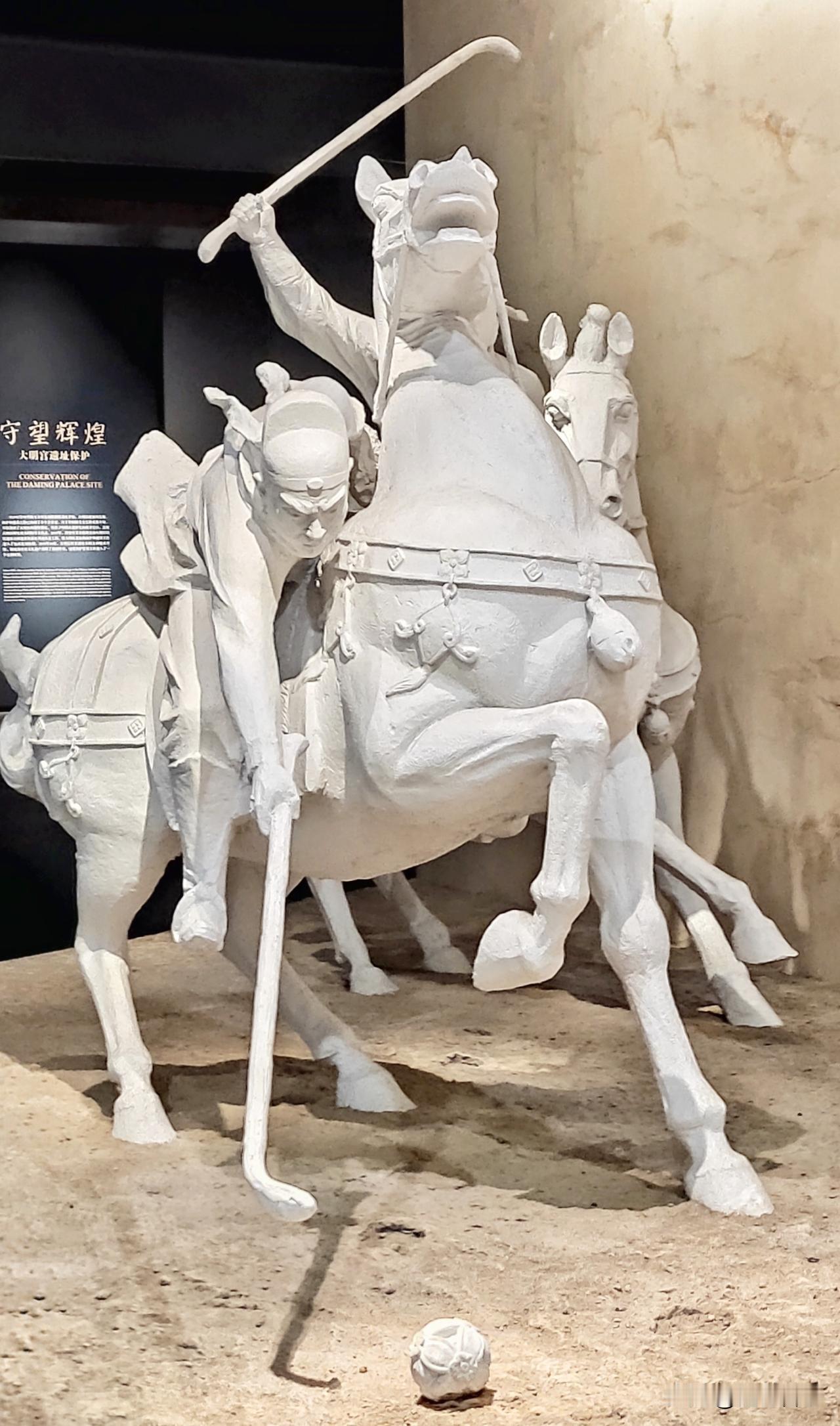 依据西安考古发现,西安及周边地区出土有大量与马球相关的珍贵文物。如1956年在西安大明宫含光殿遗址出土的大明宫遗址球场石碑,明确记载了“球场”是宫城内的重要设施,证实了唐代宫廷马球场的存在。